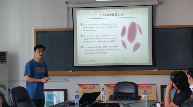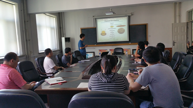 军需科技学院食品科学与工程专业,师从刘静波教授,2016年获得加拿大萨斯喀彻温大学(University of Saskatchewan)博士学位,主要研究亚麻籽胶、衍生物及其应用,目前已经发表第一作者SCI检索论文6篇,现为中国农业大学食品学院教师。刘军博士根据亚麻籽胶及其衍生物的物化特性及其与生物大分子相互作用做了相关报告。他围绕亚麻籽的品种的选择、蛋白提取的过程、比例的筛选、结构的改变和未来的展望五部分进行了详细地讲解,并介绍了亚麻籽胶的广泛应用。会后,学院教师及研究生就报告中感兴趣的话题进行了深入的探讨交流,刘军博士也与在场的师生分享了国外留学经验,师生们纷纷表示受益匪浅,气氛十分热烈。 刘军博士回国从教,第一时间回母校进行学术交流,给学生们以很大的鼓舞,也激励在场的学生努力学习,出国留学深造,将来也能为母校和社会作出贡献。