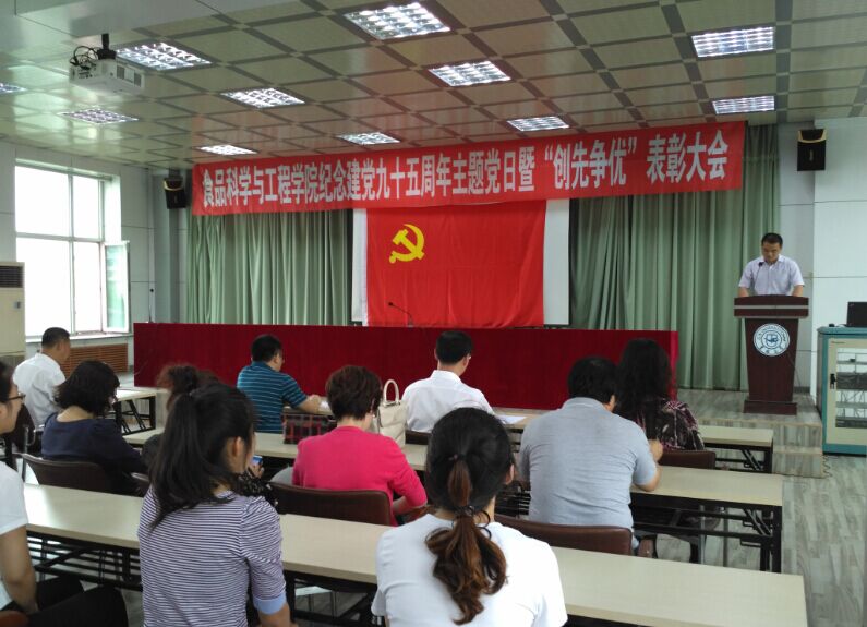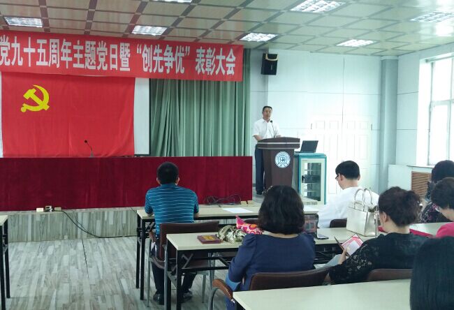 在管理楼三楼报告厅举行庆祝建党九十五周年主题党日暨“创先争优”表彰大会。学校保密办公室副主任汪祥松、学院领导、学院全体教职工党员、学生党员参加了此次会议。会议由学院党委副书记梅士伟主持。 首先,在鲜红的党旗下,全体新老党员在领誓人金鑫同志的带领下庄严宣誓,表达了对党的忠诚,对党的坚定信念和为党的事业奋斗终身的决心。 随后,学院副院长李勇军宣读了《关于表彰先进党支部、优秀党务工作者和优秀共产党员的表彰通令》,大会对获奖的先进单位和个人进行了表彰。 随后,学院党委书记高福和发表讲话,他首先对这一年来广大党员同志面对学科专业调整为新学院的建设与发展做出的努力与奉献给予了高度肯定,并指出一个刚组建的学院,就像一个新组建的家庭一样,需要观念达成、思想共识、情感交融和理解宽容,更需要各种教育资源的有序整合、科学利用和有效挖掘。为此高福和书记对全体党员提出了几点希望,一是共同建设好一个美好家园,即学院;二是发挥好党员的桥梁纽带作用和模范带头作用。三是弘扬事业为上精神、只争朝夕精神和乐于奉献精神;四是要不断强化党员意识、大局意识、责任意识和有为意识。 最后,学院组织与会人员开展了健身徒步走活动。