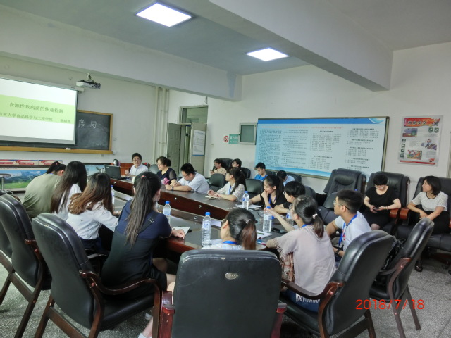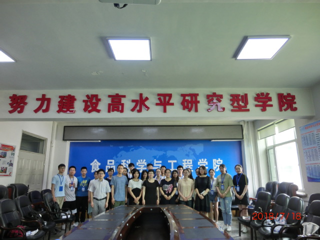 7月19日上午,首先由孙春燕教授具体介绍了学院科研方向与科研团队以及科研成果,并介绍了个人的研究方向,在此基础上,做了食品检测技术讲座。食质系老师分别介绍了各自的科研情况,与营员们进行了热烈的分组讨论。最后进行了营员小测试,并发放了夏令营调查问卷。下午,学院研究生会在林园组织营员开展了综合素质拓展活动。在活动中,营员与在校研究生共同进行了丰富多彩的游戏,锻炼了大家团队配合能力。加深了营员间的友谊,促进了与本校研究生的交流,度过了轻松愉快的午后时光。下午3:30,本次暑期夏令营活动在食品楼会议室进行了闭营式。学院党委书记高福和,院长张铁华教授,副院长庄红教授、副院长孙春燕教授、袁媛教授、研究生办王军老师参加了闭营式。首先庄红副院长主持说到,美好的时光转瞬即逝,大家初步展现出了各具特色的创新精神、合作精神、科研潜力和学习能力,希望营员们一年后,能够入学到国产av