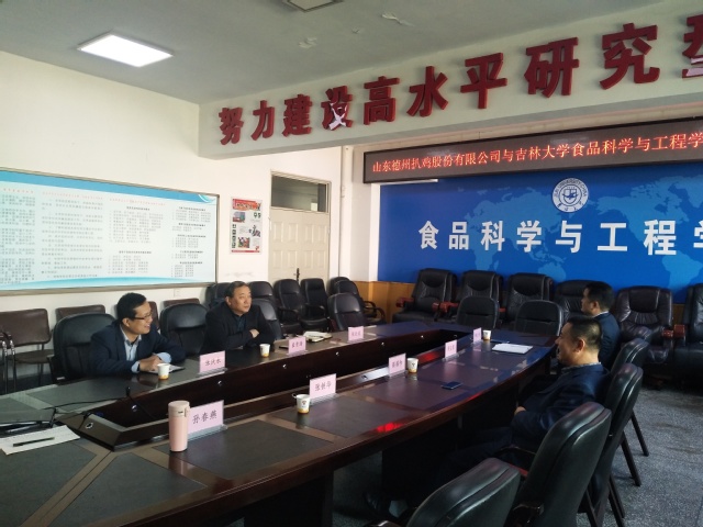 11月7日山东德州扒鸡股份有限公司代表张庆永、崔贵海来到国产av ,与学院领导高福和书记、梅士伟书记展开产学研座谈会。