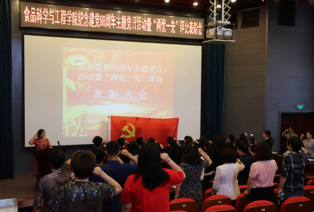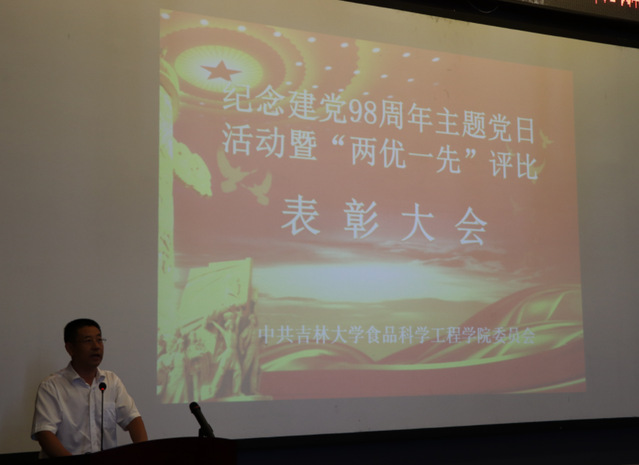 最后,学院党委书记高福和同志发表讲话。高书记强调在中国共产党成立98周年即将来临之际,学院举办建党98周年主题党日活动的重要意义,一是组织新党员入党宣誓和老党员重温入党誓词,增强党员意识和党性观念;二是表彰先进,树立典型,浓厚比学赶帮超良好氛围;三是纪念党的生日,进一步增强荣誉感、自豪感和责任感。