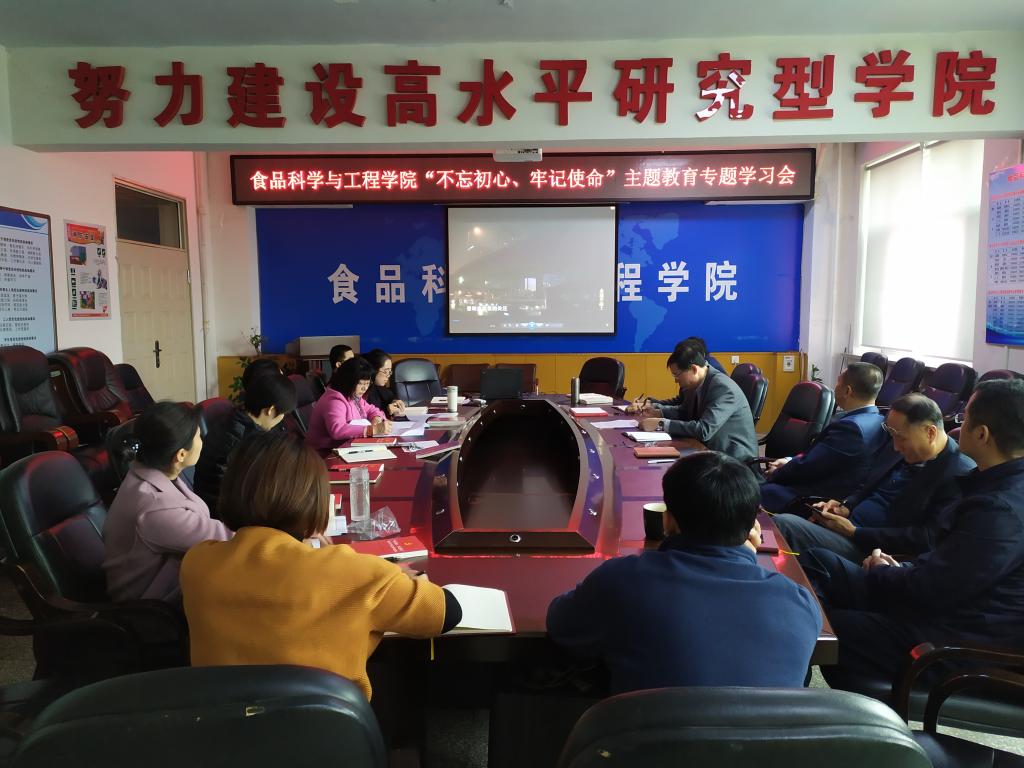 在食品楼三楼会议室召开了“不忘初心、牢记使命”主题教育专题学习会。学院党委委员、纪委委员、各党支部书记参加了会议。会议由学院党委书记高福和同志主持。