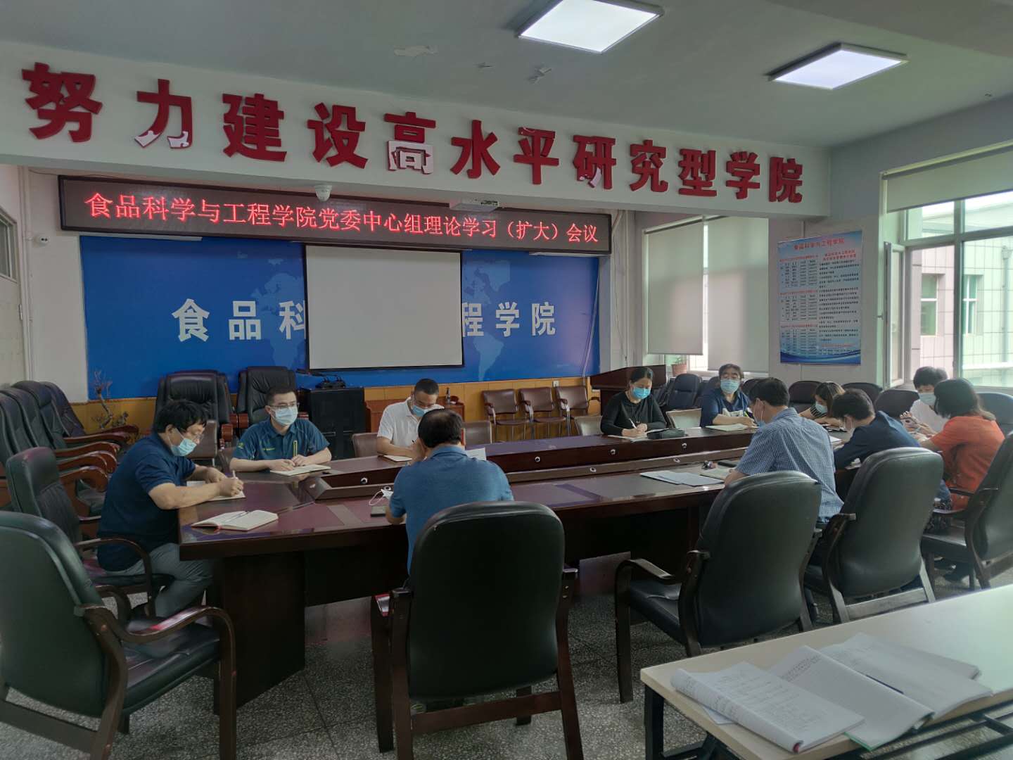 在食品楼三楼会议室召开党委理论中心组学习(扩大)会议。学院党委委员、纪委委员、各党支部书记参加了会议。会议由学院院长张铁华同志主持。