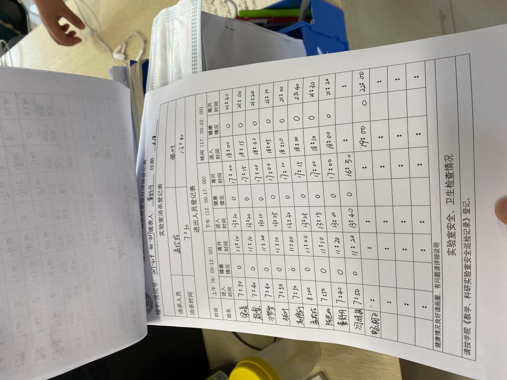 检查中发现各开放实验室十分重视疫情防控和安全工作,基本上按照学校有关要求做到了个人防护、实验室消杀、通风,大部分实验室各类使用登记详实。但是,仍有部分实验室的安全状况不容乐观,存在垃圾清理不及时,口罩随意丢弃,实验室开放详情登记表,消杀登记不及时、不健全,遮挡实验室配电箱等问题和隐患。检查组对发现的问题现场拍照,并通知相关负责人立即整改,同时将发现问题和隐患在学院公示,以便大家周知并督促整改。