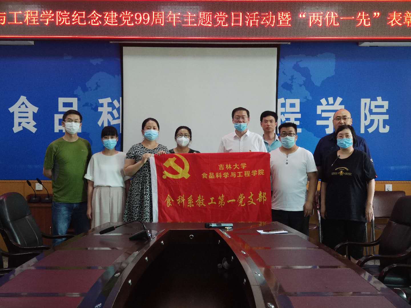 食品工程学院教工第一党支部开展了一次党课活动。本次党课由支部书记、食科系主任于亚莉同志主讲。党课的主题是让党旗在防控疫情斗争第一线高高飘,食科支部党员教师“积极推进复学复课”。