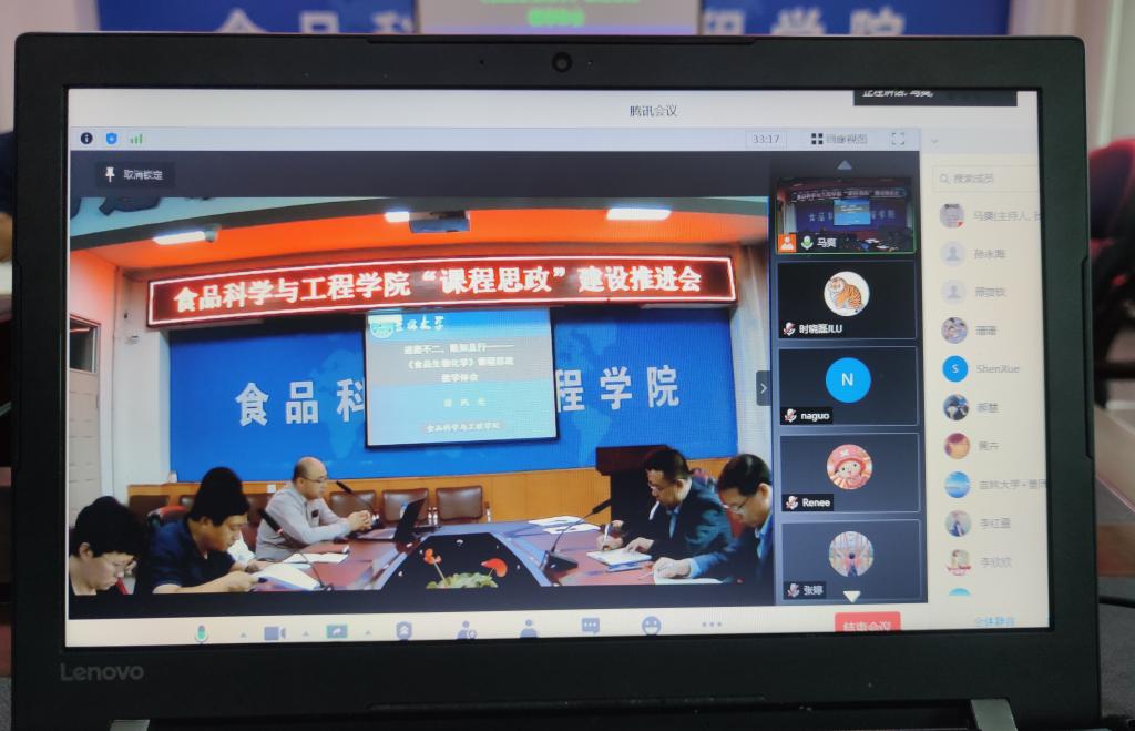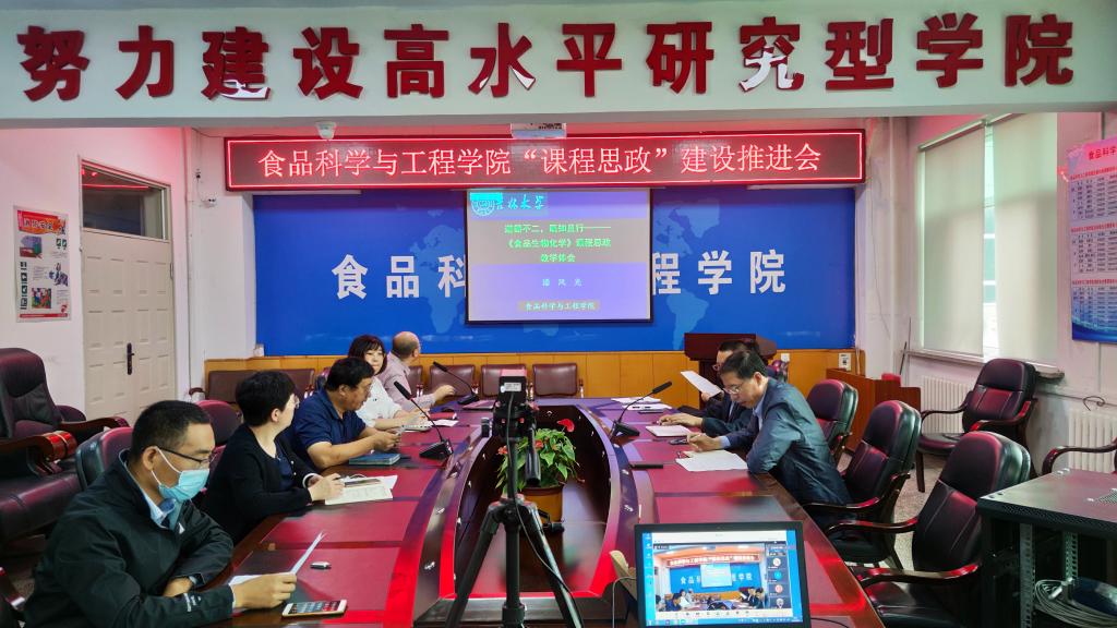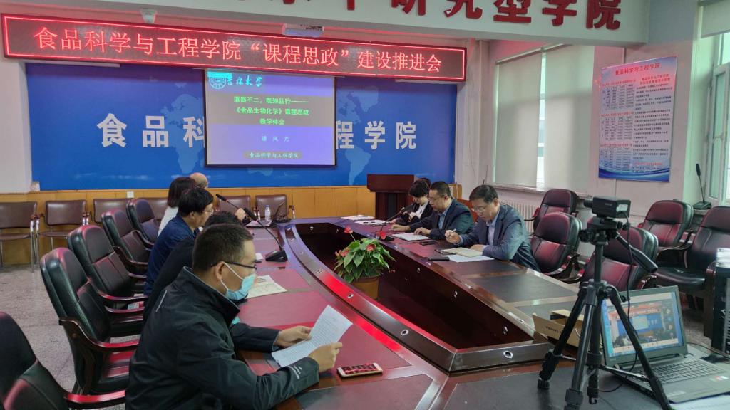 在食品楼三楼会议室召开了课程思政建设工作推进会。学院领导班子成员、“学科育人示范课程”项目负责人及参与课程思政建设工作的老师参加了会议。学院全体教职工通过腾讯会议参加视频会议。会议由学院党委书记高福和同志主持。