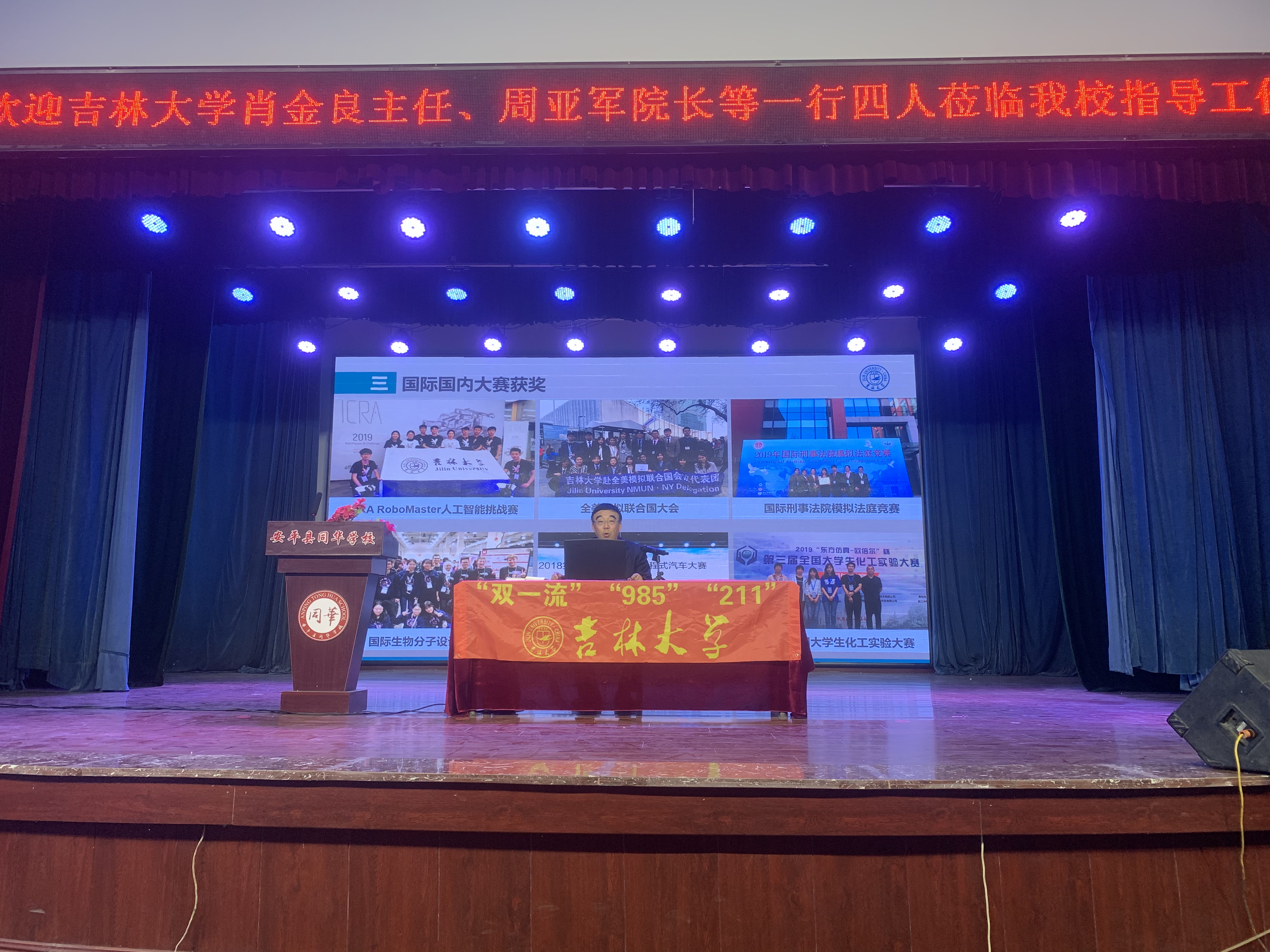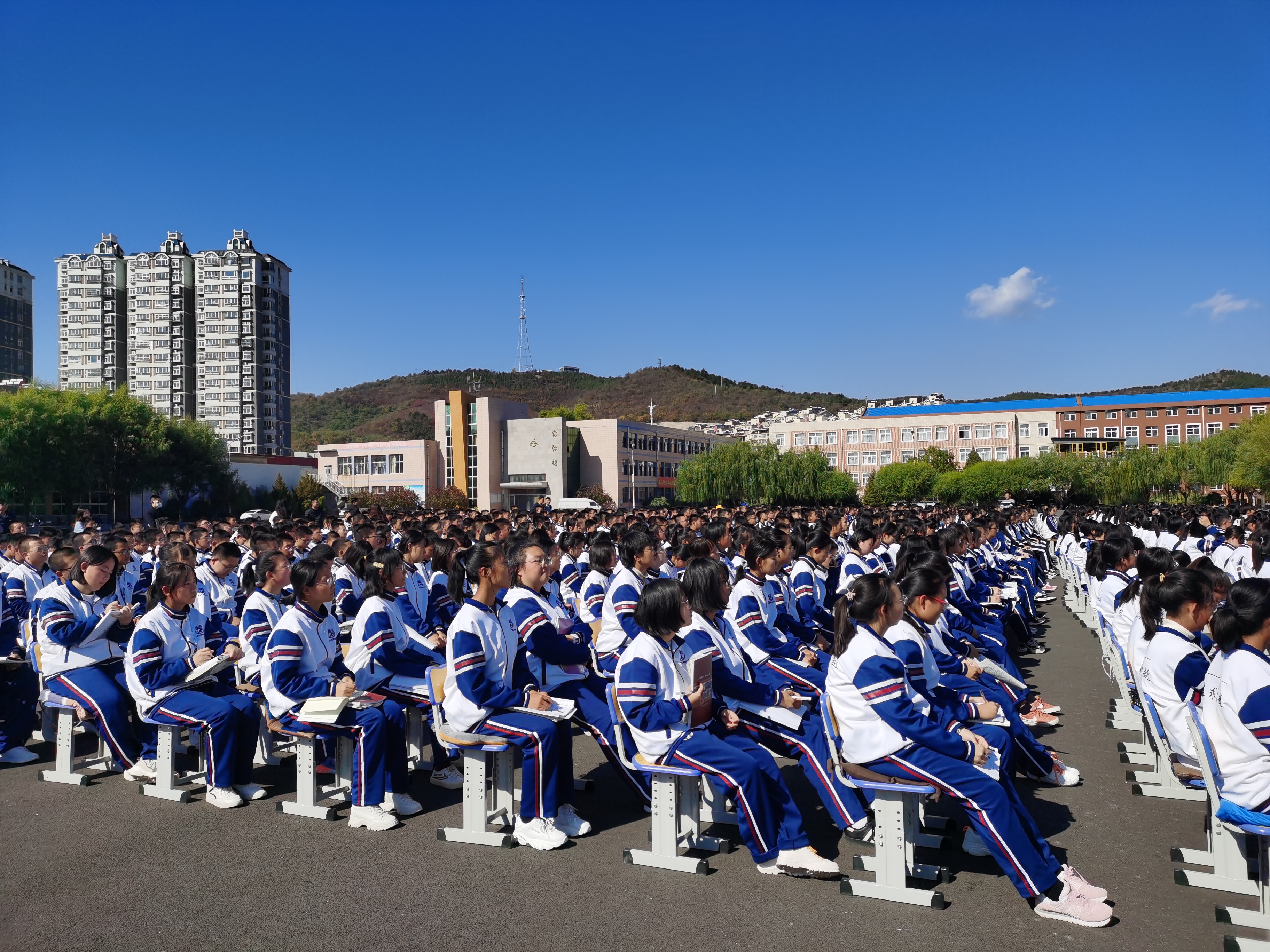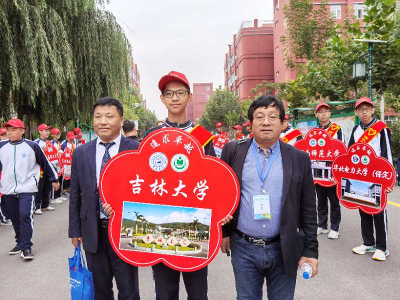 这次招生宣传所到学校,领导高度重视、考生热切期待,特别是在文茂高级中学和滦平一中。文茂高级中学因参加人数太多而将宣讲地点定在操场;滦平一中本不在我们的宣传日程安排中,得知我们在文茂高级中学宣讲,校长和副校长亲自到学校诚挚的邀请并安排我们到容纳1500多人的大礼堂作报告。任增元教授的报告在激昂的吉大校歌伴奏下精彩纷呈,掌声此起彼伏,台上台下互动热烈。最后任教授和在场的师生共同朗诵岳飞的《满江红》将气氛推到极致。