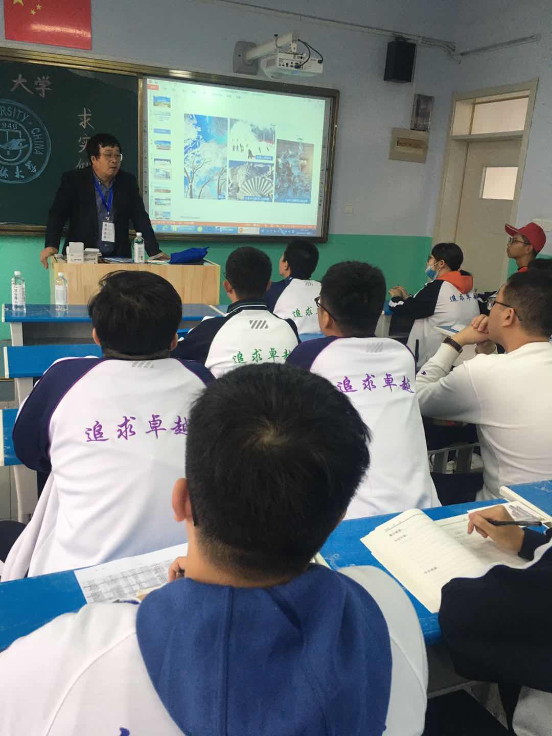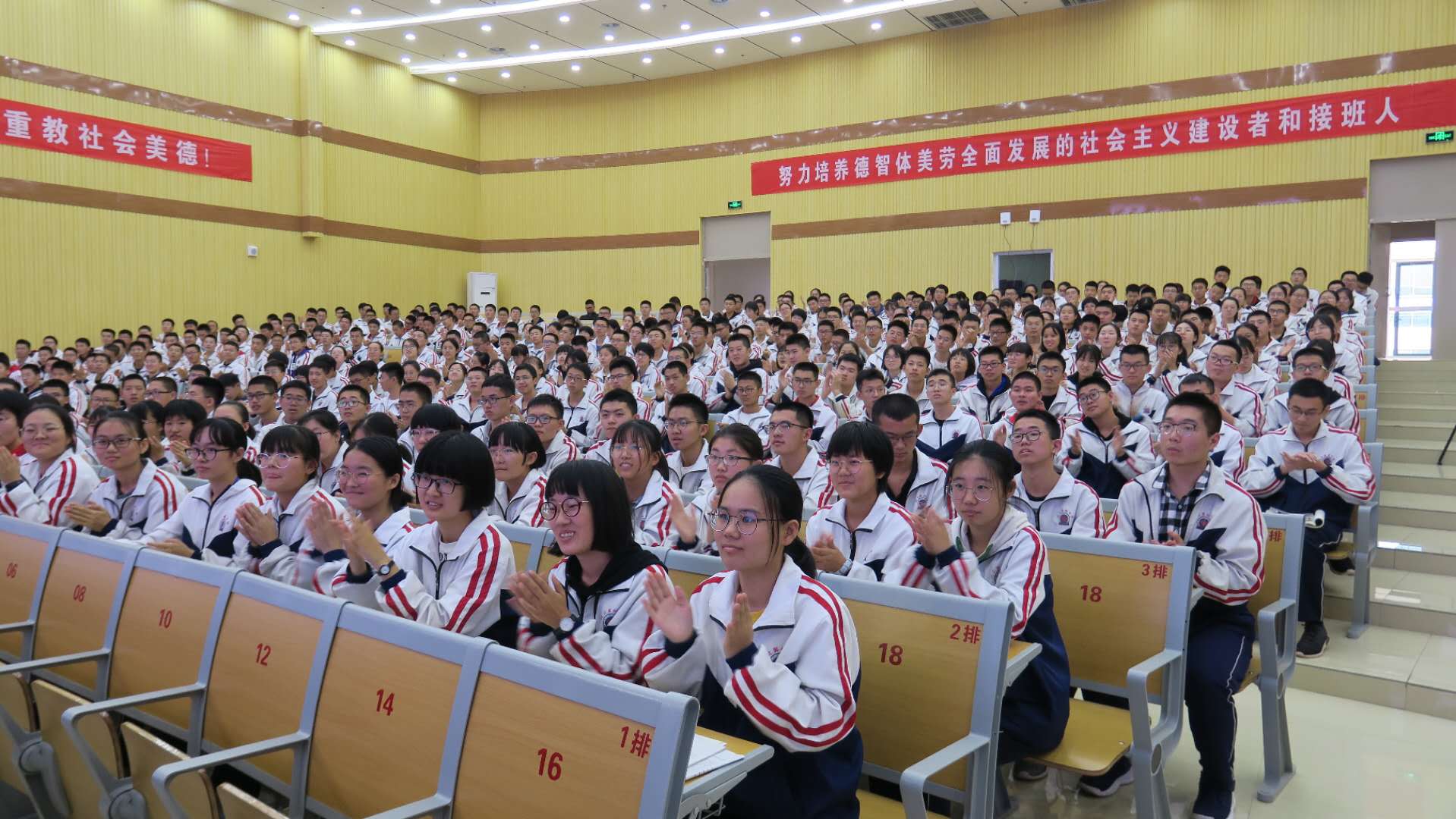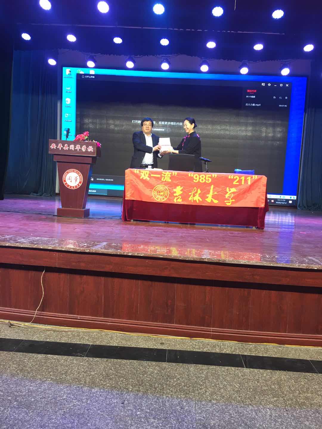 这次招生宣传所到学校,领导高度重视、考生热切期待,特别是在文茂高级中学和滦平一中。文茂高级中学因参加人数太多而将宣讲地点定在操场;滦平一中本不在我们的宣传日程安排中,得知我们在文茂高级中学宣讲,校长和副校长亲自到学校诚挚的邀请并安排我们到容纳1500多人的大礼堂作报告。任增元教授的报告在激昂的吉大校歌伴奏下精彩纷呈,掌声此起彼伏,台上台下互动热烈。最后任教授和在场的师生共同朗诵岳飞的《满江红》将气氛推到极致。