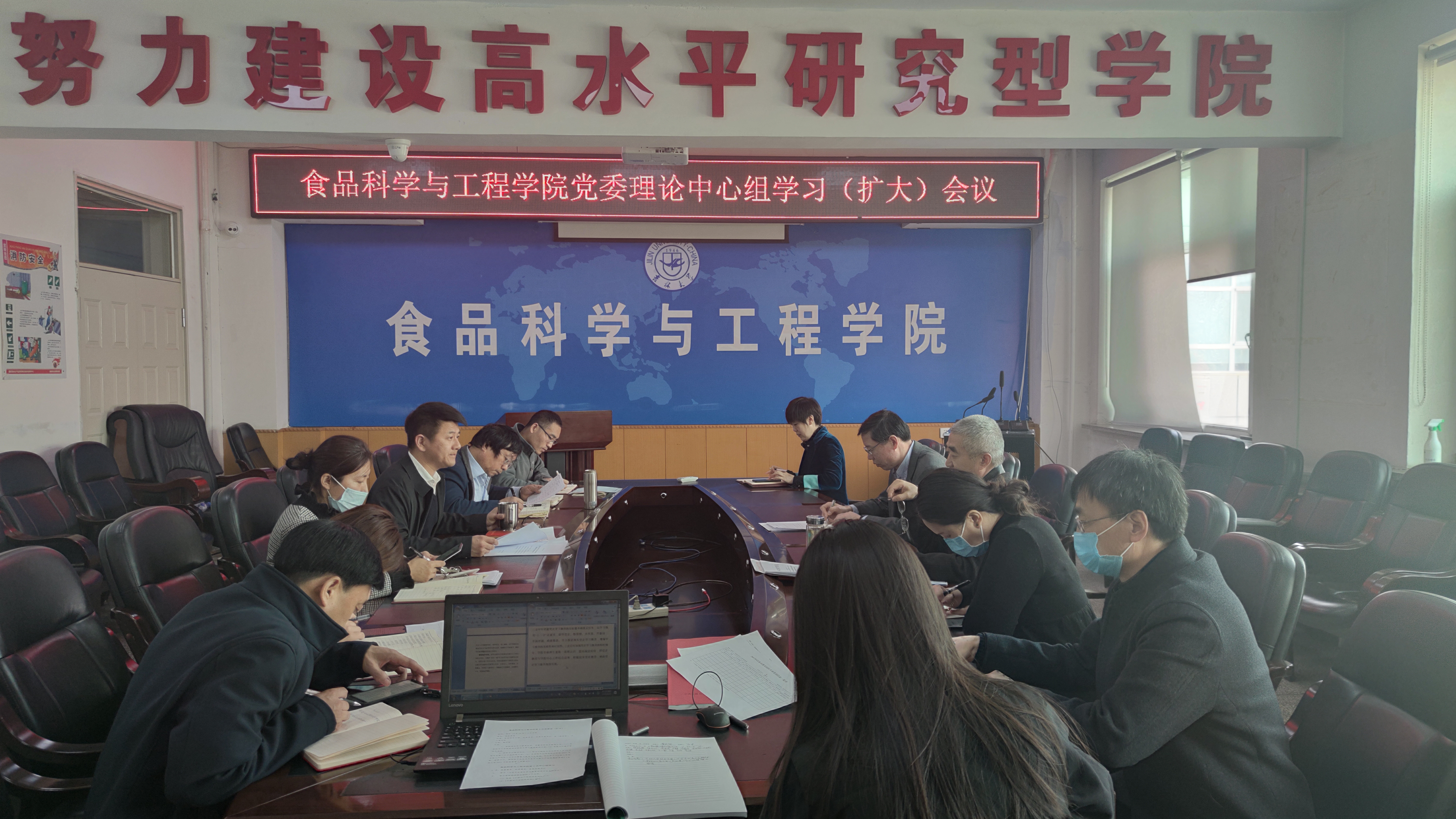 在食品楼三楼会议室召开党委理论中心组学习(扩大)会议。学院领导班子成员、党委委员、纪委委员,各党支部书记参加了会议。会议由学院党委书记董怀智主持。