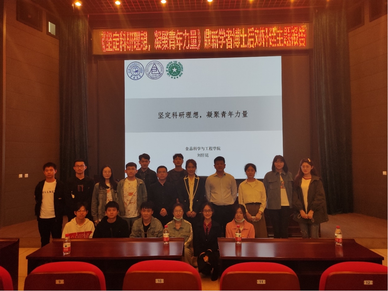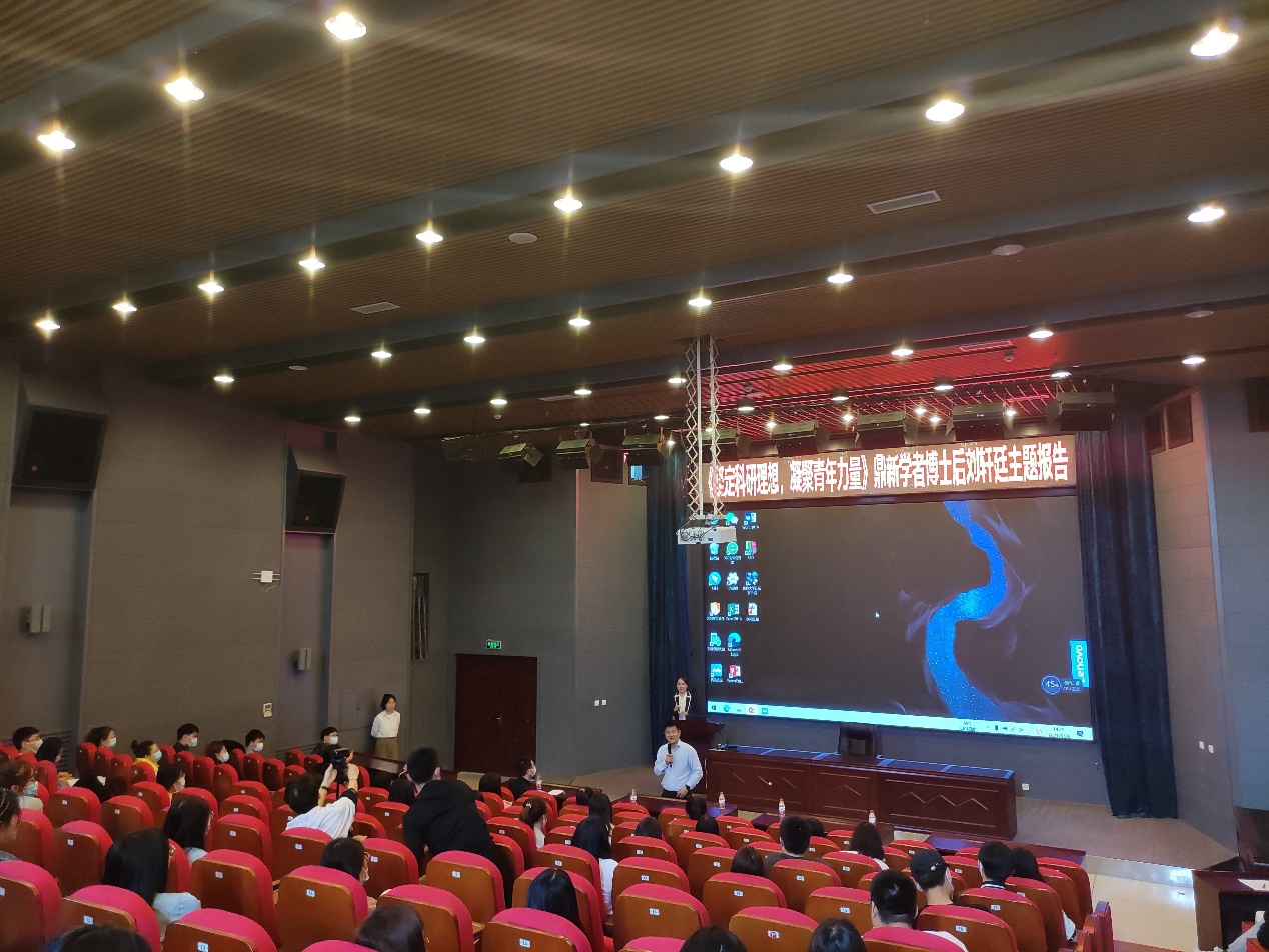 在和平校区图书馆报告厅举办《坚定科研理想,凝聚青年力量》主题报告会,本次活动邀请的嘉宾是鼎新学者博士后刘轩廷老师。学院党委副书记李超、研究生办公室主任王军和研究生、本科生代表参加了本次报告会。