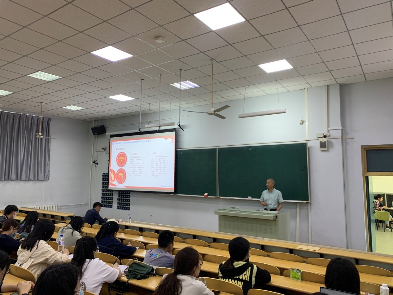 在科学讲堂200教室举办党史学习教育之党委书记上党课专题讲座,学院副书记李超主持会议,研究生科研办主任王军、支部书记王新欣、研究生党员和本科生党员、积极分子到会。