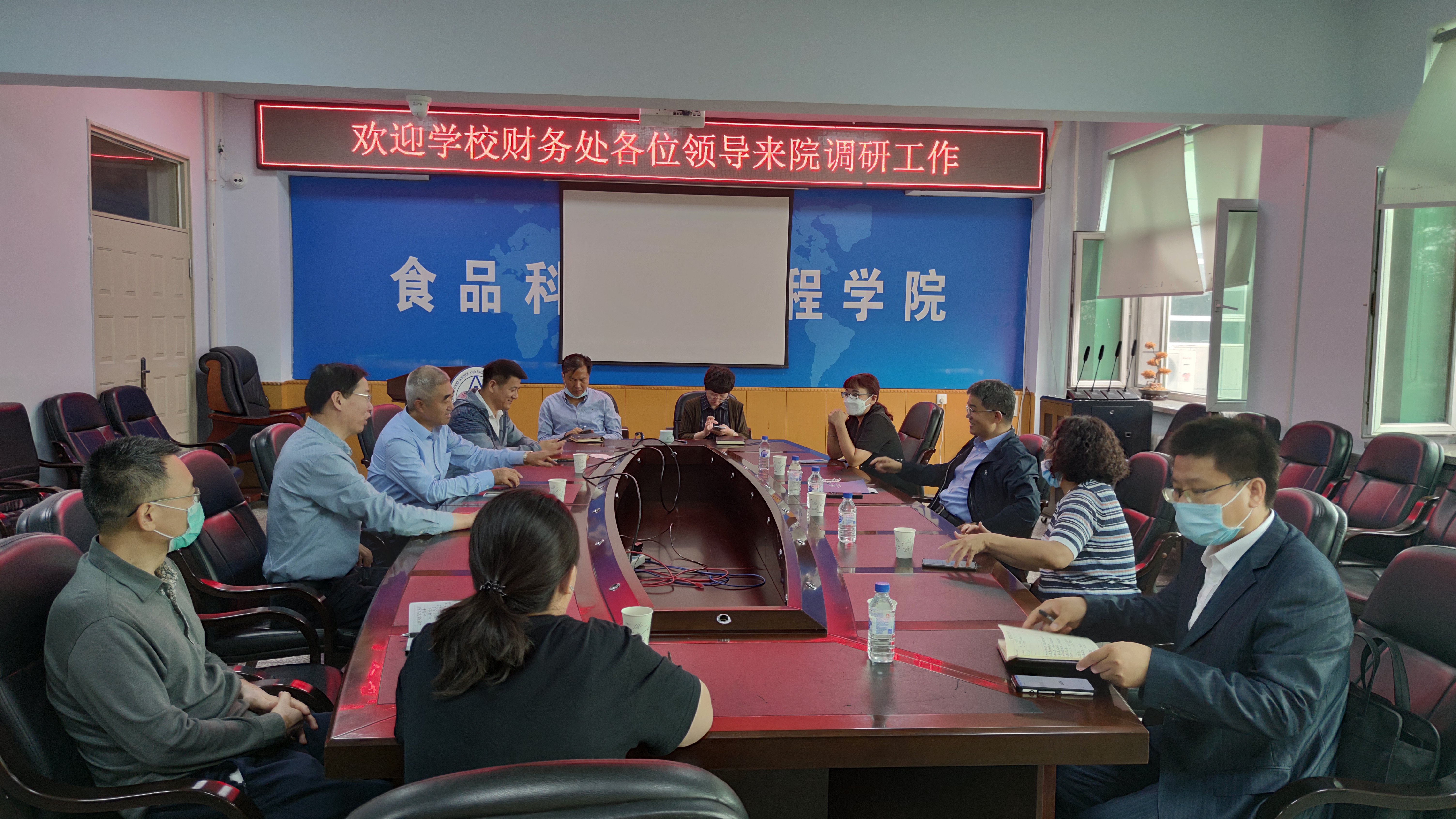在食品楼三楼会议室召开了调研工作会议。学校财务处处长李宝永、西区财务办公室主任单李岩、西区财务办公室高扬科长、西区财务办公室宫景玉副科长一行四人来到学院开展工作调研。学院全体领导班子成员、系主任参加了会议。
