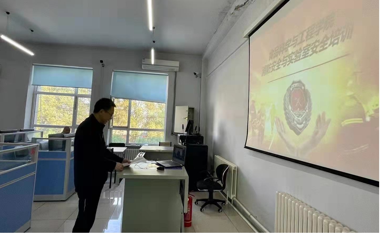 会上,保卫处任亚峰老师围绕火灾扑救、灭火器使用、火灾逃生等方面带领同学们学习消防安全,提醒同学们严格遵守相关部门规章制度,提高自防自救能力;食品实验中心王二雷老师从学院实验安全管理体系、检查办法等各个方面详细介绍实验室安全知识,以各大高校实验室安全典型案例警示同学们实验室安全隐患不可小觑。