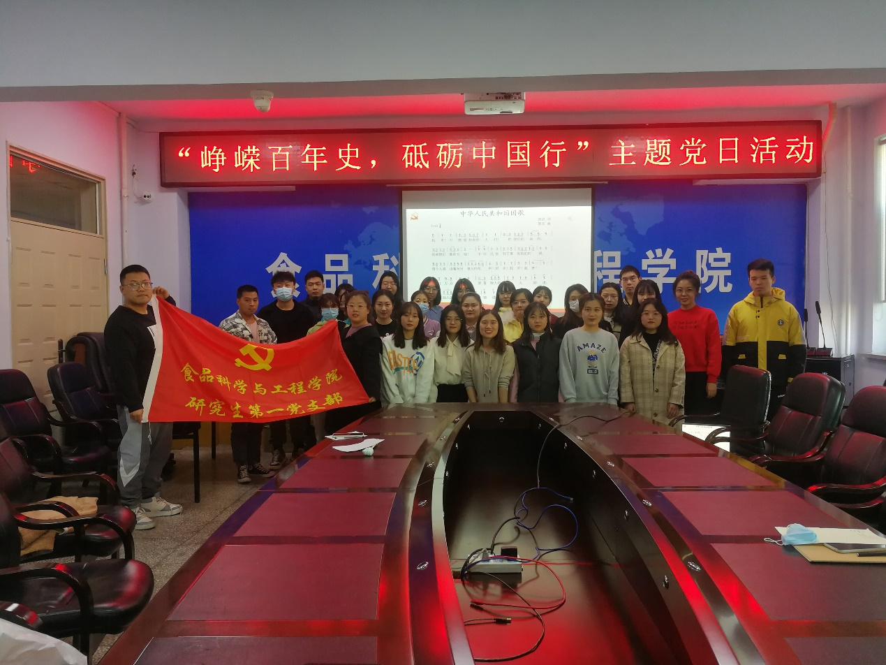 研究生第一党支部与第二党支部在食品楼三楼会议室联合举办“峥嵘百年史,砥砺中国行”主题党日活动。