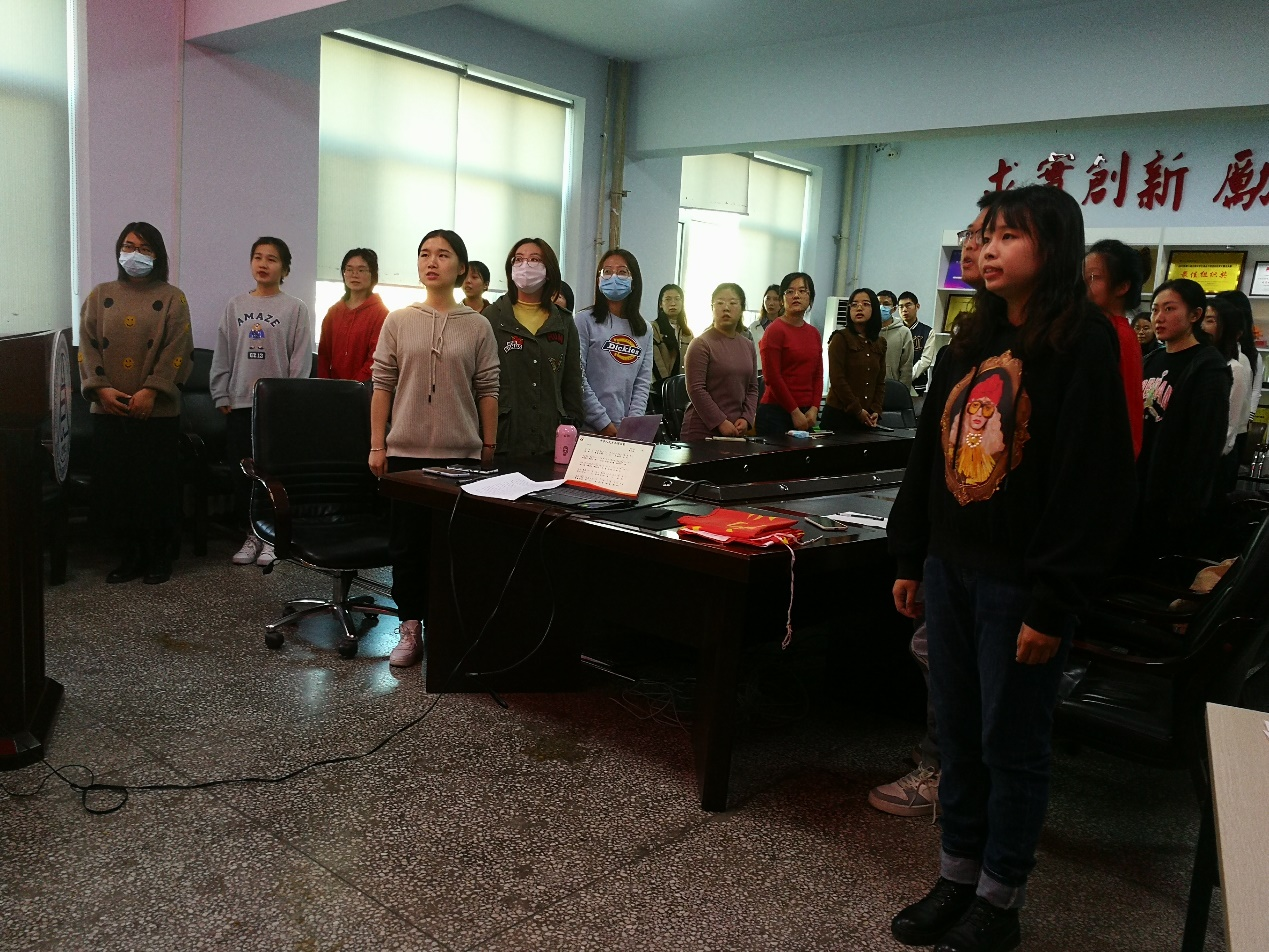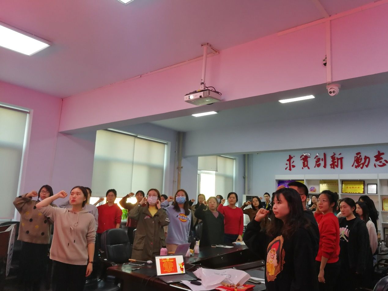 最后,全体党员在第一党支部副书记刘祎和第二党支部副书记宋冬辉的带领下,重温入党誓词,牢记初心使命,增强党性观念和党员意识。