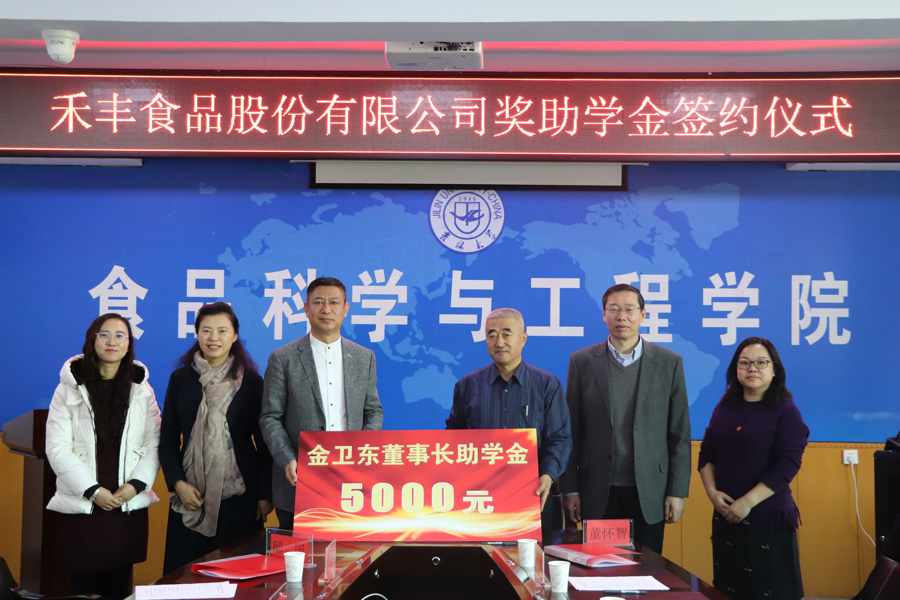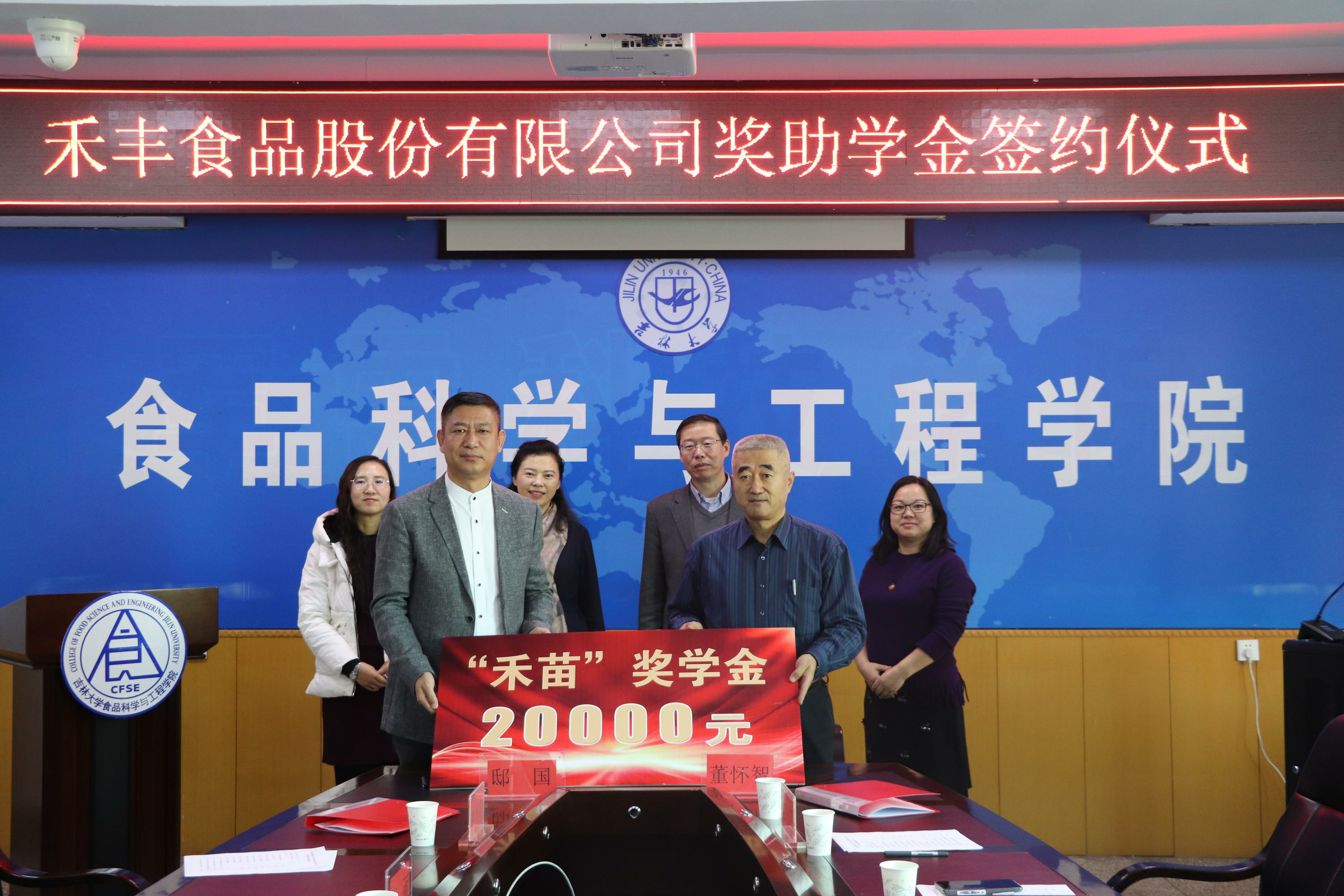 党委书记董怀智、禾丰食品股份有限公司副总裁邸国代表校企双方签署了“禾丰”奖助学金协议书。禾丰食品有限公司在国产av