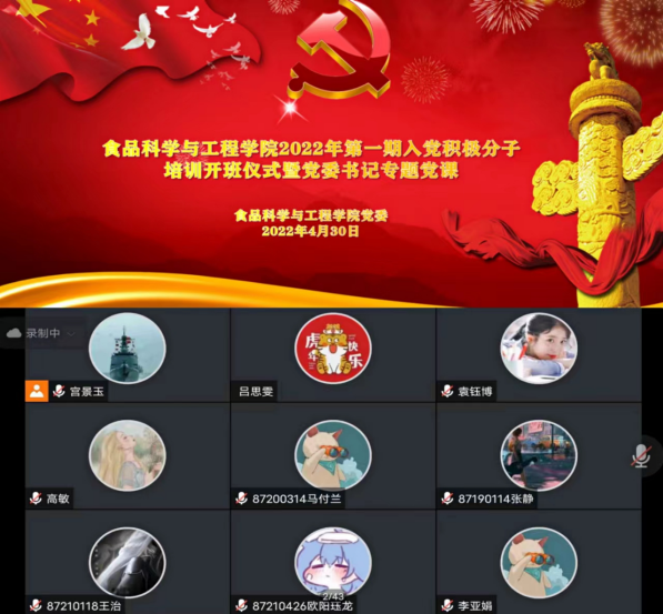 以腾讯会议形式线上举办了2022年第一期入党积极分子培训班开班仪式暨党委书记讲专题党课。学院党委书记董怀智、党委副书记兼副院长李超、党委办公室主任宫景玉、各学生党支部书记、全体入党积极分子和学生党员390多人参加了此次会议。会议由李超副书记主持。