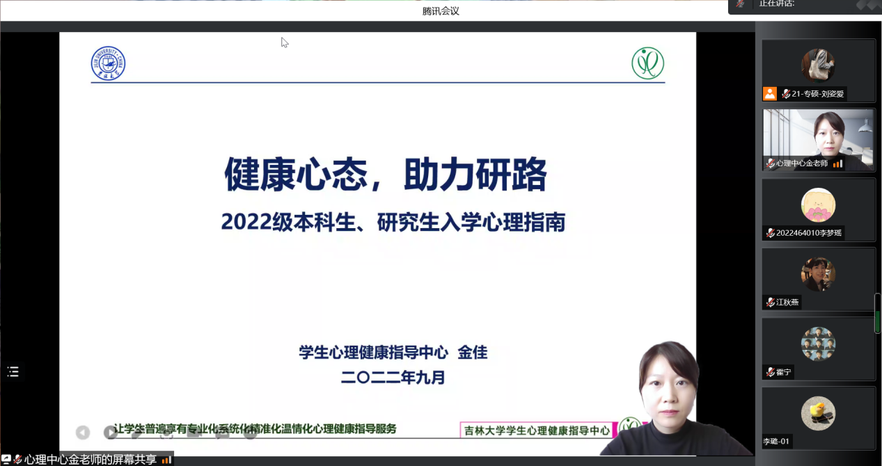 特邀心理健康指导中心金佳老师,为2022级研究生新生作一场以“健康心态,助力研路”为主题的线上讲座,讲座由国产av