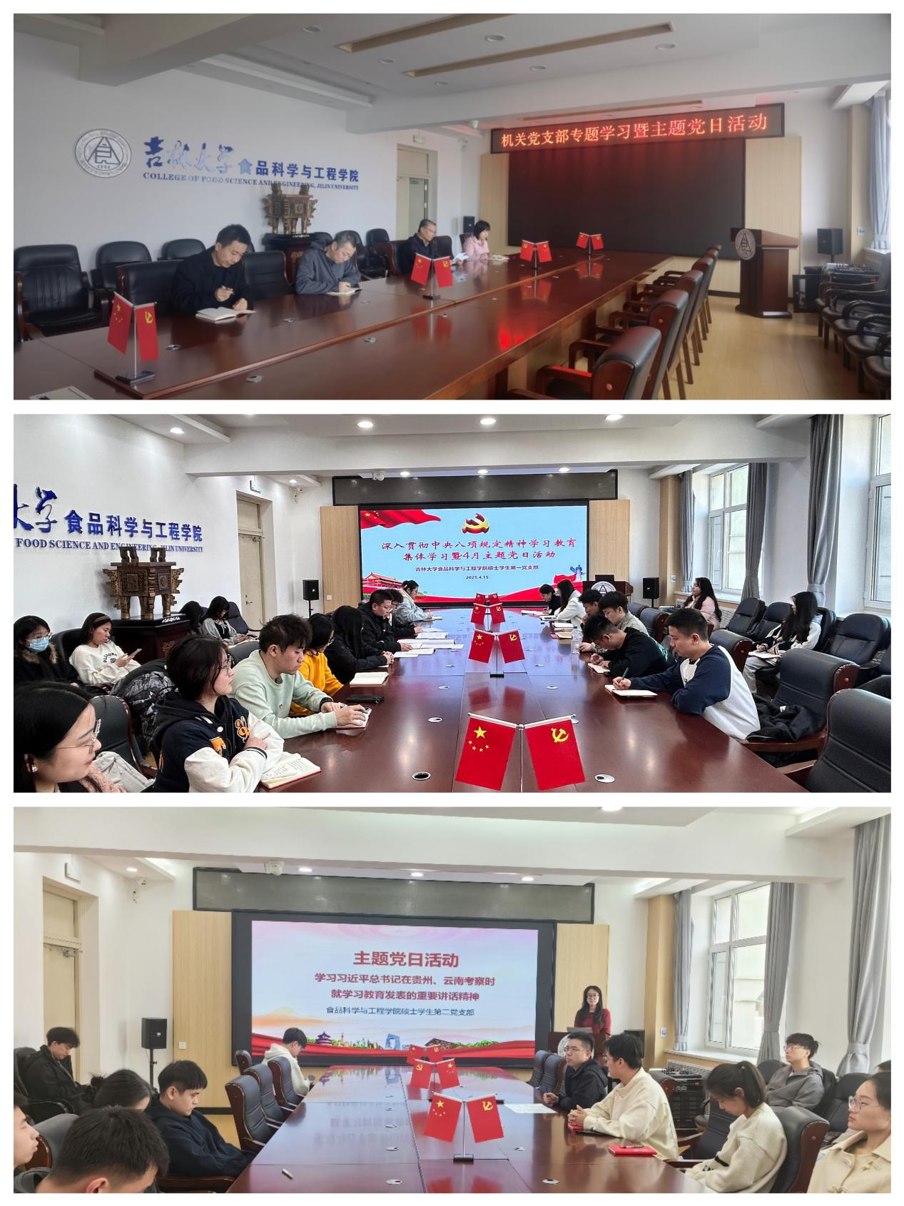 党委组织所属9个教工和学生党支部召开集中学习领会习近平总书记关于深入贯彻中央八项规定精神学习教育的重要讲话精神,传达学校党委学习教育部署要求,推动学习教育取得实效。
