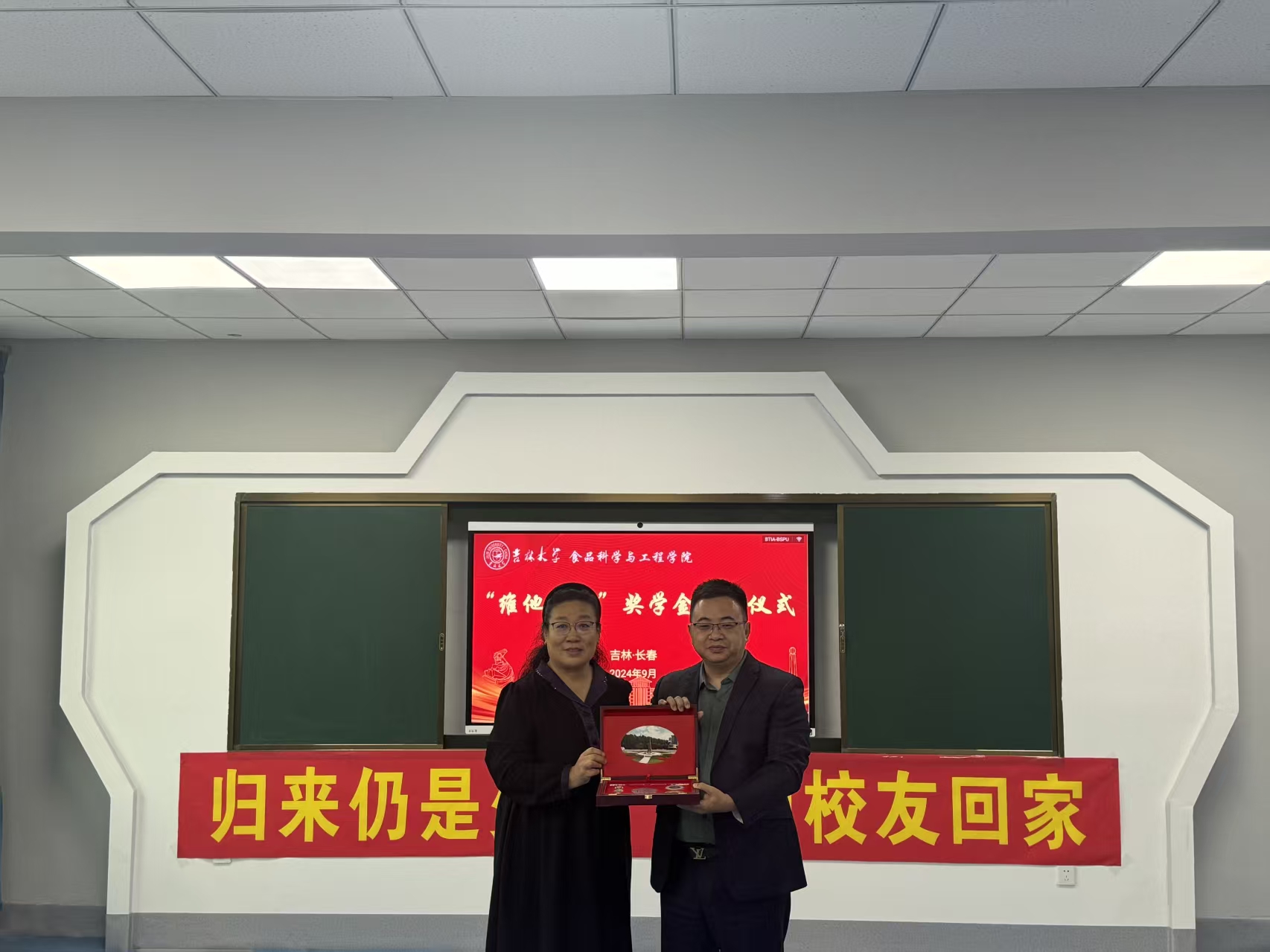 兽医学科创建120周年暨中国人民解放军原军需大学校庆日时,向母校捐赠10万元设立“唯他时光”奖学金,用于资助热爱食品专业、品学兼优的大学生。