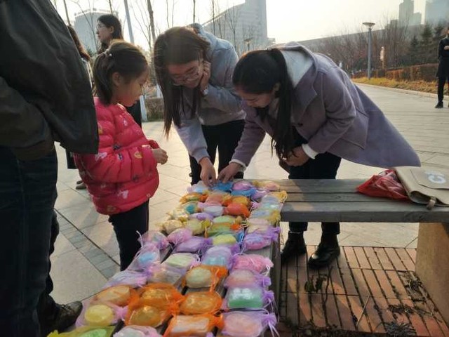 此次义卖物品主要是“与光同行”训练中心的孩子自制的手工皂和深圳第26届世界大学生夏季运动会纪念笔。义卖活动开展前,志愿者们前往该中心参观孩子们制作手工皂的过程,手工皂样式繁多,色彩缤纷,纪念笔款式新颖。同时志愿者也感受到了他们劳动成果的来之不易。常人轻而易举就可以完成的环节,他们需要反复好多次才能做好!志愿者坚持自愿购买的原则,积极和路人沟通,努力向群众传达帮助自闭症儿童的意愿,强调活动的公益性质,得到很对同学及爱心市民的支持。义卖活动从上午9点开始到下午5点结束,义卖所获的总金额1294元,将全部转交给“与光同行”特殊儿童训练中心。