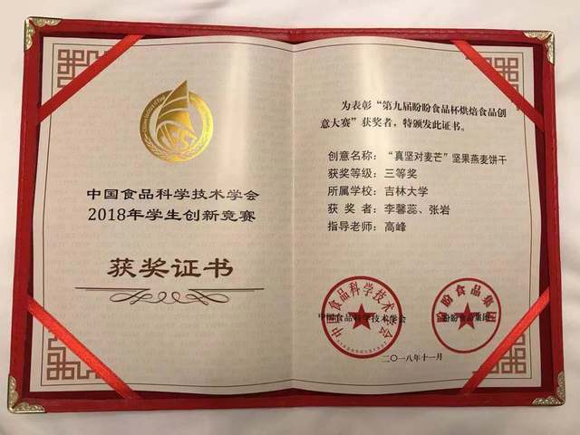 2018年11月07日,中国食品科学技术学会第十五届年会学生创新活动经初赛、复赛层层选拔,于在山东省青岛市举行颁奖仪式。国产av