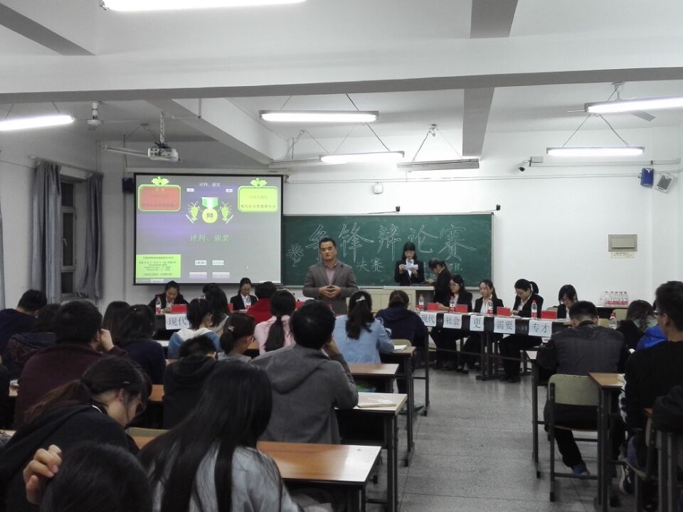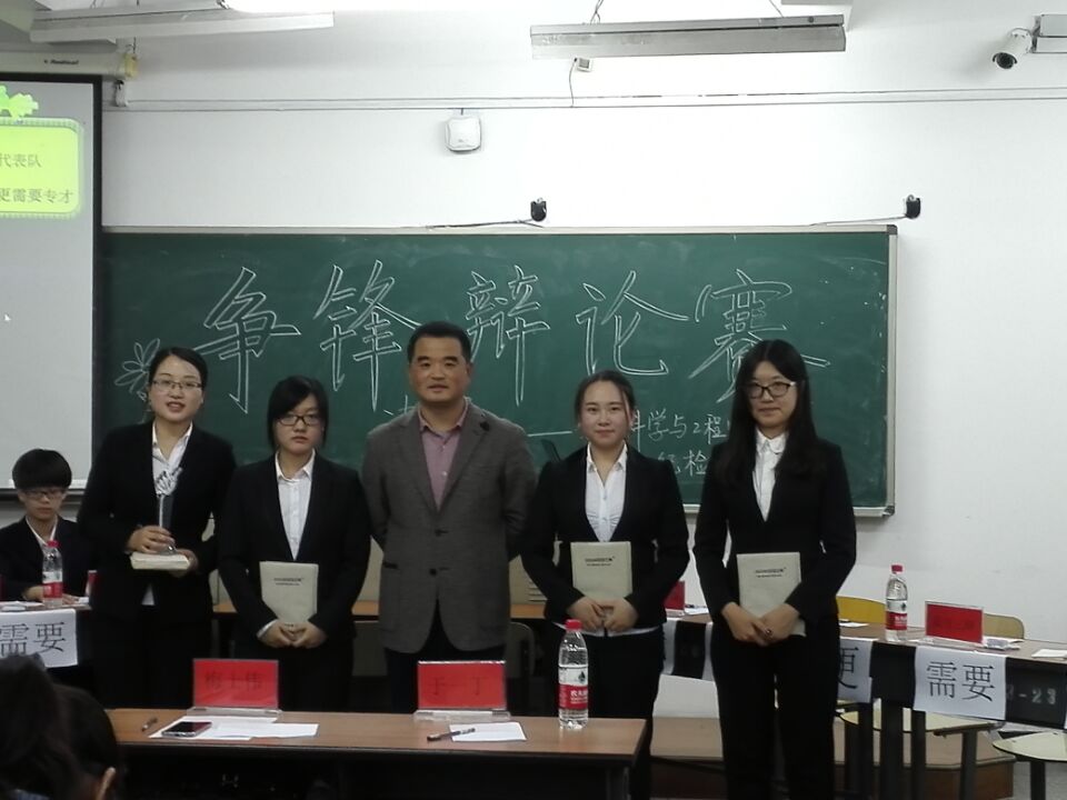 学生会举办了学院第二届“争锋”辩论赛。经过一周的激烈角逐,2015级食品质量与安全专业五班代表队与六班代表队冲出重围,进入最终的决赛环节。10月16日,“争锋”辩论赛决赛于科学讲堂301室举行,学院党委副书记梅士伟、团委书记兼学工办主任王丹、2015级兼职辅导员于一丁担任决赛评委。 决赛中,双方队伍首先进行独具风格的自我介绍,为评委及现场观众留下了深刻的印象。随后,双方就“现代社会更需要通才还是专才”展开了激烈的辩论,正方从现代社会与科技发展的综合化要求、人才培养的过于专门化带来的问题进行了阐述,而反方则从现代社会、通才与专才的概念辨析立论,唇枪舌战,不分你我。在观众提问环节中,同学们结合自己的思考,对辩手们提出了许多深刻的问题,现场气氛十分活跃。经过紧张的辩论,经评委合议,反方国产av