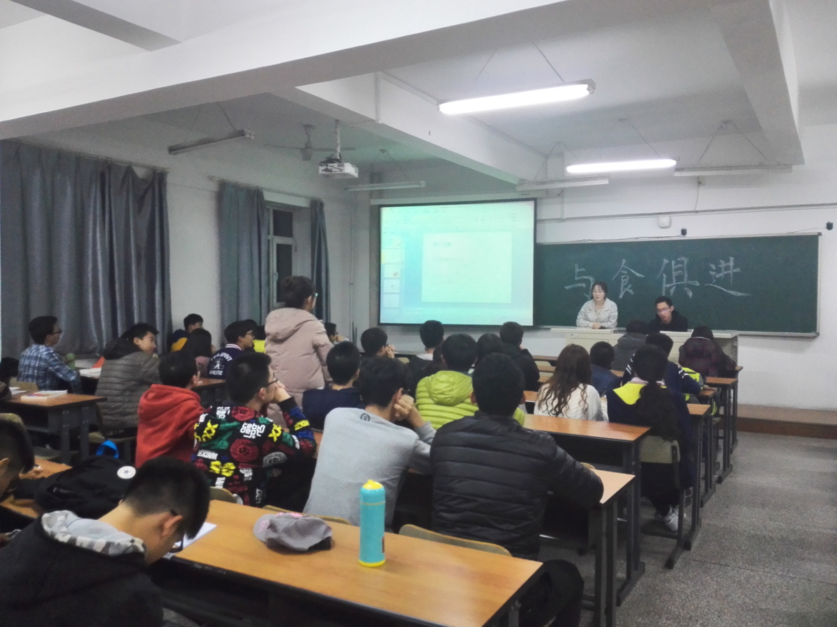 学生会宣传部和创新创业部联合举办的“与食俱进”创新创业大赛宣讲会于科学讲堂302举办。此次宣讲特别邀请到了2013级创新创新保研获得者、“大圣归来”创意面包的获奖者侯萍萍学姐为各参赛队伍提供思路。 首先,主持人介绍了本次“与食俱进”创新创业大赛的活动主题、汇报要素、汇报演讲环节及评分细则,期间,可由同学们进行提问。同学们听得仔细,问得认真,大家积极响应,反应热烈。接下来,由侯萍萍学姐向大家简要介绍了参加“盼盼杯”及“康师傅”烘焙大赛的比赛经验,同时,对同学们接下来要参加的比赛给出了详细的建议并对同学们表达了美好的祝愿。最后,学院学生会主席赵驰乐萌进行了总结发言,对侯萍萍学姐的到场以及经验分享表示感谢并表述了自己的观点和看法。
