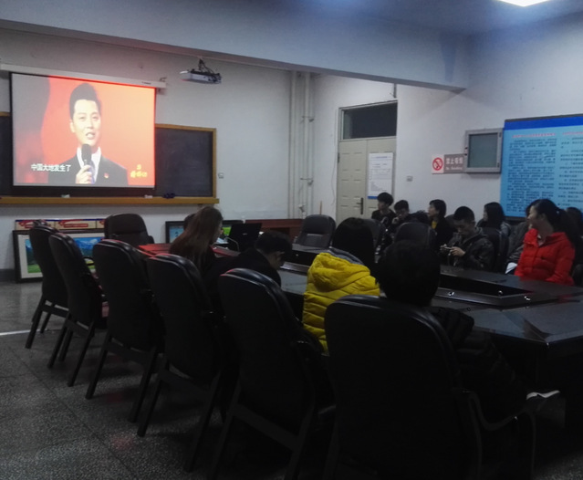 本科生党支部书记郝慧、金鑫组织全体本科生党员、预备党员、发展对象于食品楼三楼会议室组织观看了《榜样》典型事迹专题节目。
