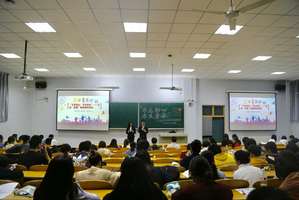 于科学讲堂200教室举办“不忘初心,不负青春”纪念“五四”运动知识竞赛,学院党委副书记梅士伟、学工办主任王丹、团委负责人郝慧及大二大三团支部代表参加本次活动。
