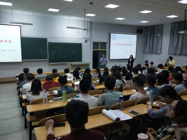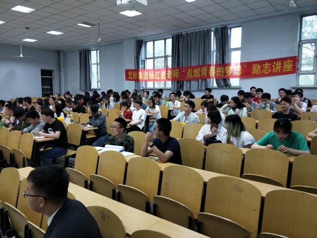 讲座过程中,杨红岩老师首先向同学们介绍了自己的人生经历,他从小跟随自己的父亲在菜市场卖肉,三年级就独自销售自家部分商品,上中学时为了不给家庭带来经济困难,他勤学苦读,以优异的成绩获取了免学费的资格,从此便不让家人给予生活及学习费用。在山东大学读书期间,身兼多份职业,大学的锻炼给予他巨大的财富。他毕业两年,创业三年,就创建了山东龙岸企业咨询有限公司,业务范围包括培训、企业管理、咨询策划、品牌运营。他以自己的亲身经历提醒与会同学们在大学一定要做好三件事:一是充分利用课余时间踏入社会进行社会实践,从实践中成长;二是要心怀梦想,社会不会抛弃有梦想的人,有梦想才能有美好的未来;三是要有健康的身体,鼓励同学们找到自己喜欢的体育项目,在运动中磨练自己的意志,提高抗挫折能力。最后他用四句话送给同学们共勉:人生因梦想而伟大,人生因学习而改变,人生因行动而成功,人生因感恩而有贵人相助。在提问环节中,在场的同学们踊跃地提问,现场气氛热烈。