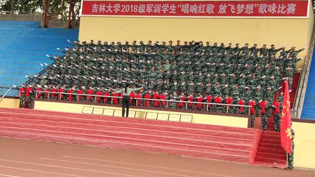 2018级军训学生“唱响红歌、放飞梦想”歌咏比赛在中心校区体育场隆重举行。食品科学与工程学院全体新生代表军训旅7营参加比赛,先后演唱《吉林大学校歌》《走向复兴》两首歌曲,以严整的气势和嘹亮的声音,在由军训旅各营选送的十支参赛队伍中取得第四名的良好成绩。
