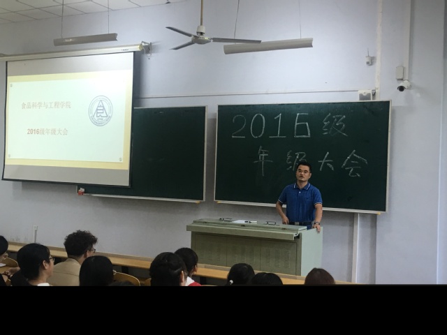 于9月19日中午12点,在科学讲堂100召开了2016级年级大会。学院党委副书记梅士伟、团委书记郝慧及2016级全体同学参加会议。