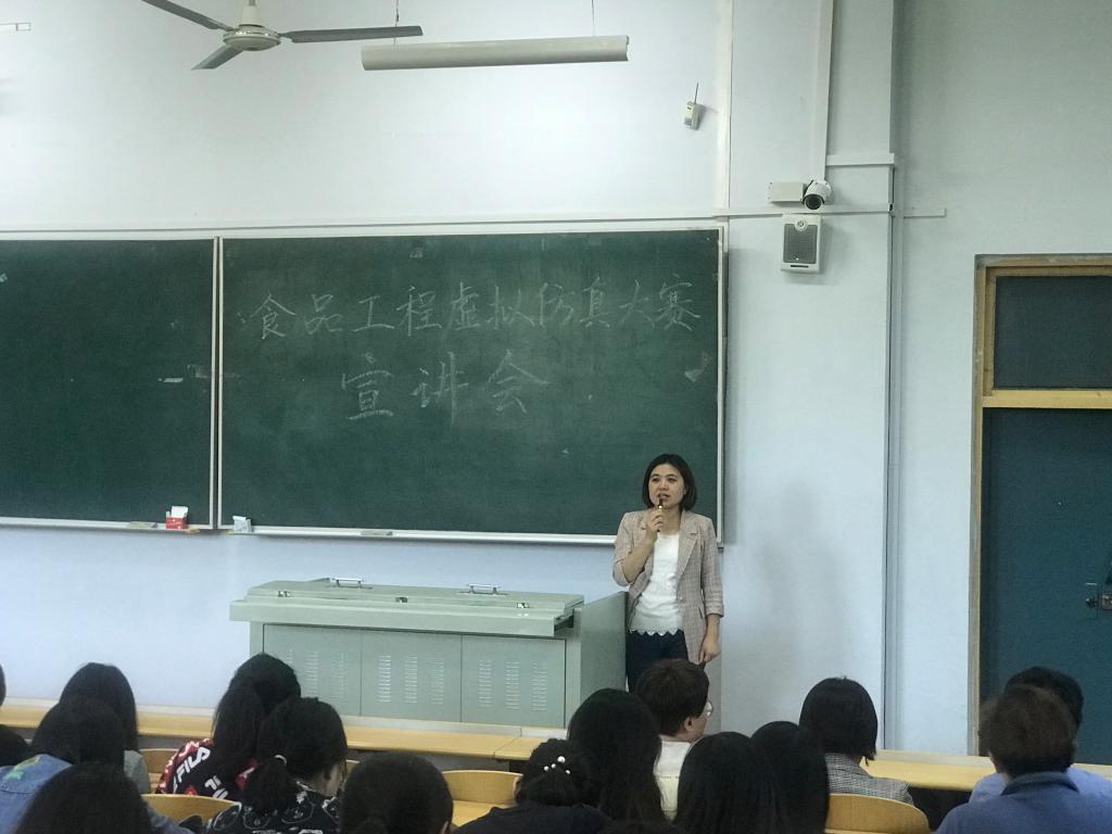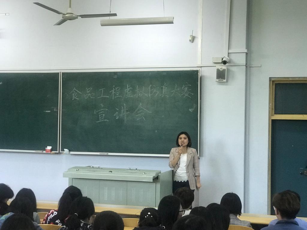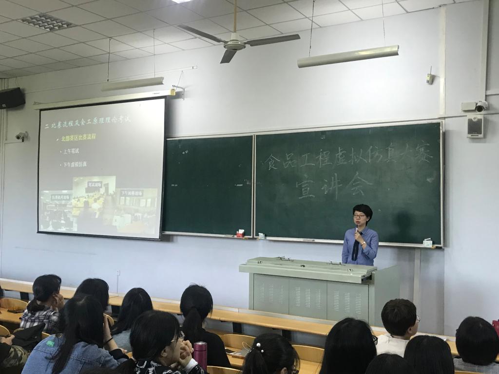 宣讲会开始后,团委书记郝慧老师就虚拟仿真大赛的创办目的,即推动高等学校食品类专业“新工科建设”、提升核心课程的教学质量与行业发展能力,激发大学生学习积极性等方面进行了说明。随后,奚春宇、王笑丹、王翠娜、张燕四位指导教师依次上台,对大赛基本情况、比赛流程、工艺理论考试、虚拟实验及实验操作进行讲解。最后,代表学院参加大赛并获得优异成绩的学生代表李江飞、李继红分别发言,讲述了自己从中所获得的能力与进步,为准备参赛同学的备战提供经验分享。通过老师们的介绍以及两位优秀学长的讲解,参赛选手们更清晰地认识到备战的技巧与关键之处,为提升自己的专业知识与综合能力找到了突破口。