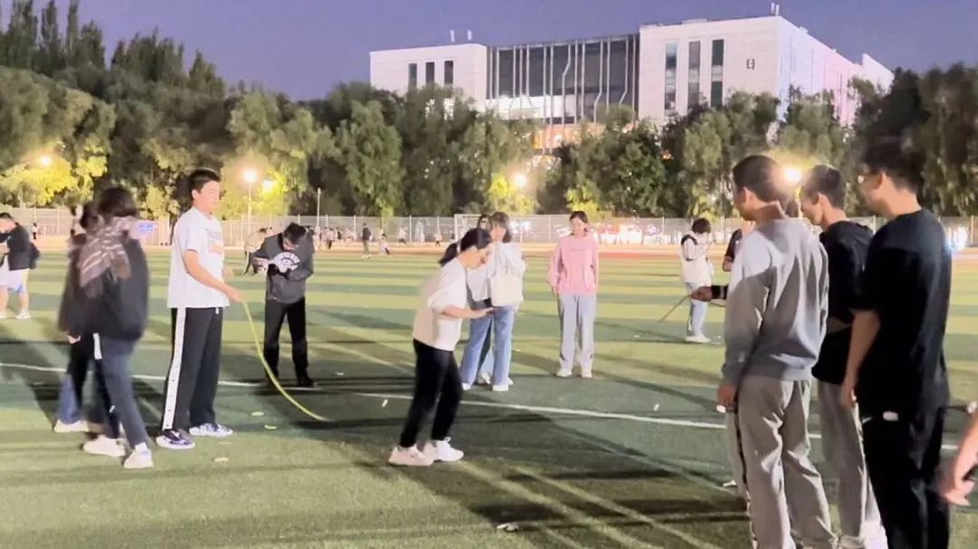为了以最饱满的精神状态迎接即将到来的运动会,各项目的同学在负责人的带领下开始了有序的训练。其中,时代列车和八字长绳作为团体项目,尤其考验团队配合和协调能力。
