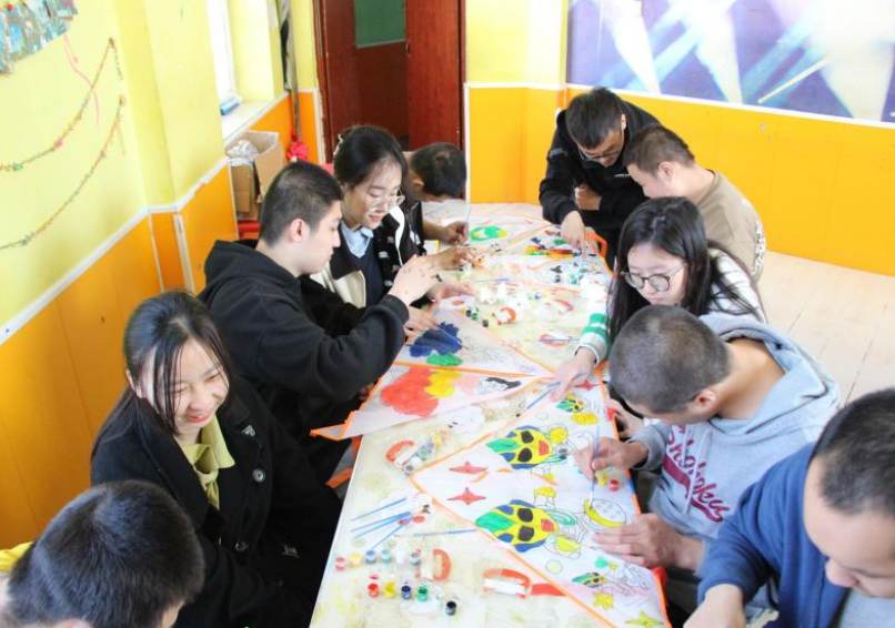 活动准备阶段,志愿服务部成员进行多次探讨,确定活动具体事宜,分组分工为活动进行预热,采购了若干个风筝,并招募了11名志愿者。来到特殊儿童训练中心后,为了激发孩子们的兴趣,锻炼孩子们的动手能力,志愿者先与孩子们一起开始画风筝。
