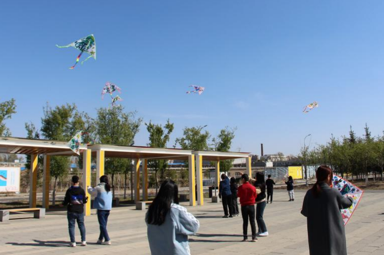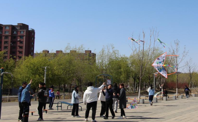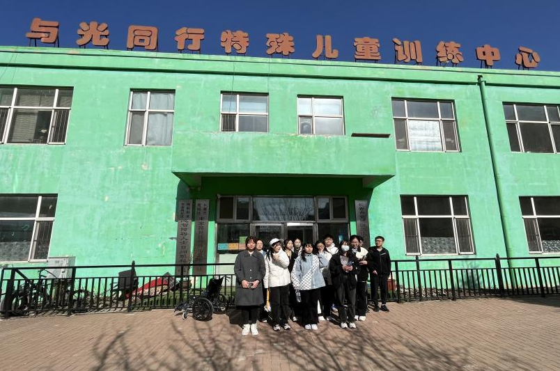 学生志愿者于2023年4月23日来到长春市宽城区“与光同行”特殊儿童训练中心,和“与光同行”的自闭症儿童一起制作风筝、放飞风筝。