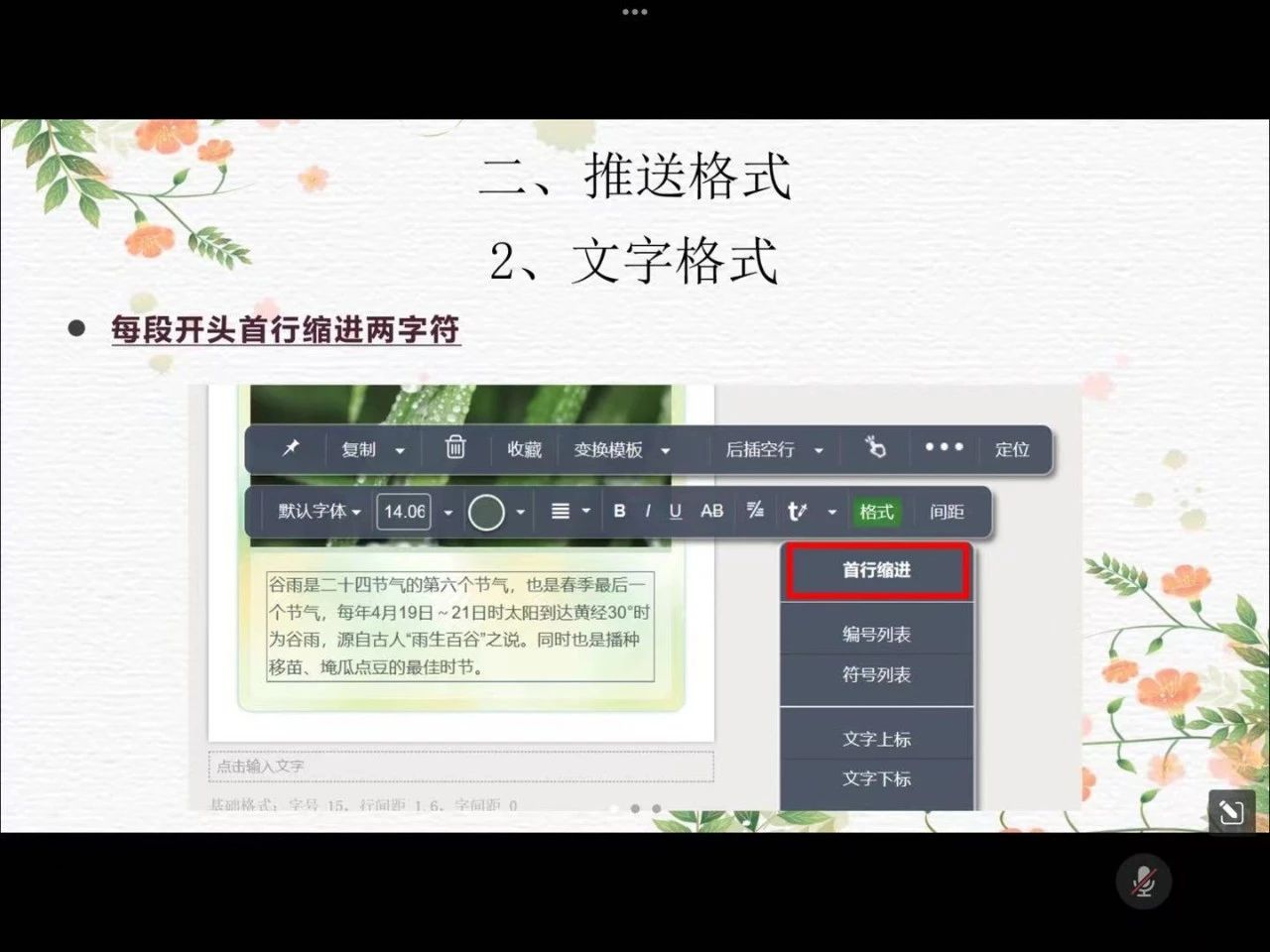 活动首先由网宣部负责人贾新宇对推送制作进行培训,她细致讲解了推送所需要的相关网站及基本操作,分享了做好推送的技巧和方法并着重强调了学院推送的一般规定。