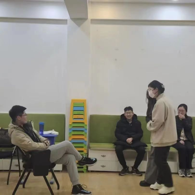 在暖身阶段后,本次团体心理辅导来到班会阶段。在“情景剧编演”环节中,各组的每位成员将近期遇到的烦恼与困惑写在纸条中,然后由组长选出最具代表性和普遍性的烦恼纸条,并集小组之力根据纸条内容编排一个情景剧进行演绎。情景剧表演后,在场其他组同学 自愿发言,讲述个人看法或者是自己与这个故事的链接,表演小组的成员也用简短的语言表 达了本环节的个人体会。最后,由心理委员引导同学们分享班会感受,重温心理班会的意义,畅谈在班会的收获。