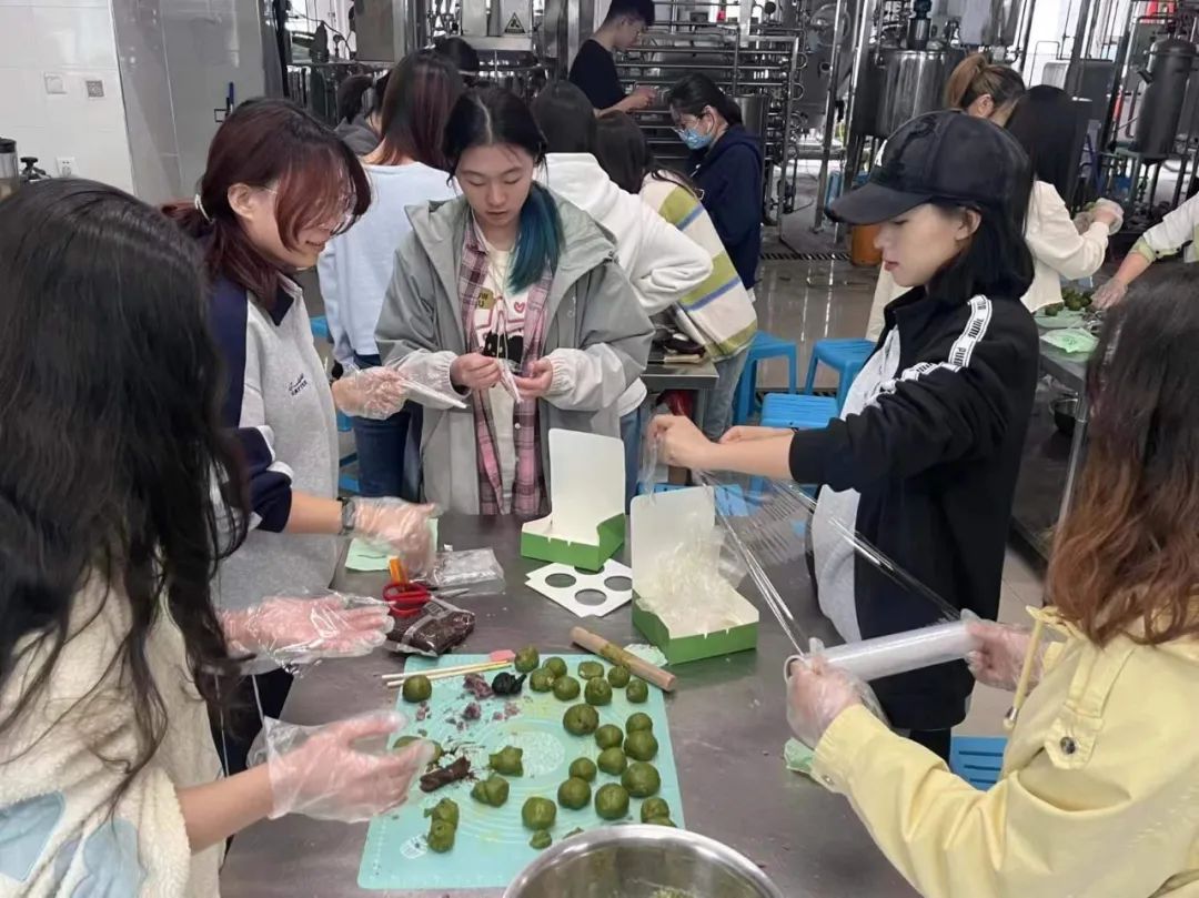 在本次活动中,工作人员为同学们准备了红豆沙、紫薯、肉松蛋黄等多种口味的馅料和各种工具。20个同学被分为4组,在一同学习青团制作步骤后,大家开始动手进行制作,和面,包馅……在大家的齐心协力下,一个个软糯香甜的青团在同学们手中获得新生。小小青团,却需要同学们耗费极大的耐心去制作,凝聚着新时代青年人对生活的热爱,对劳动的热忱。