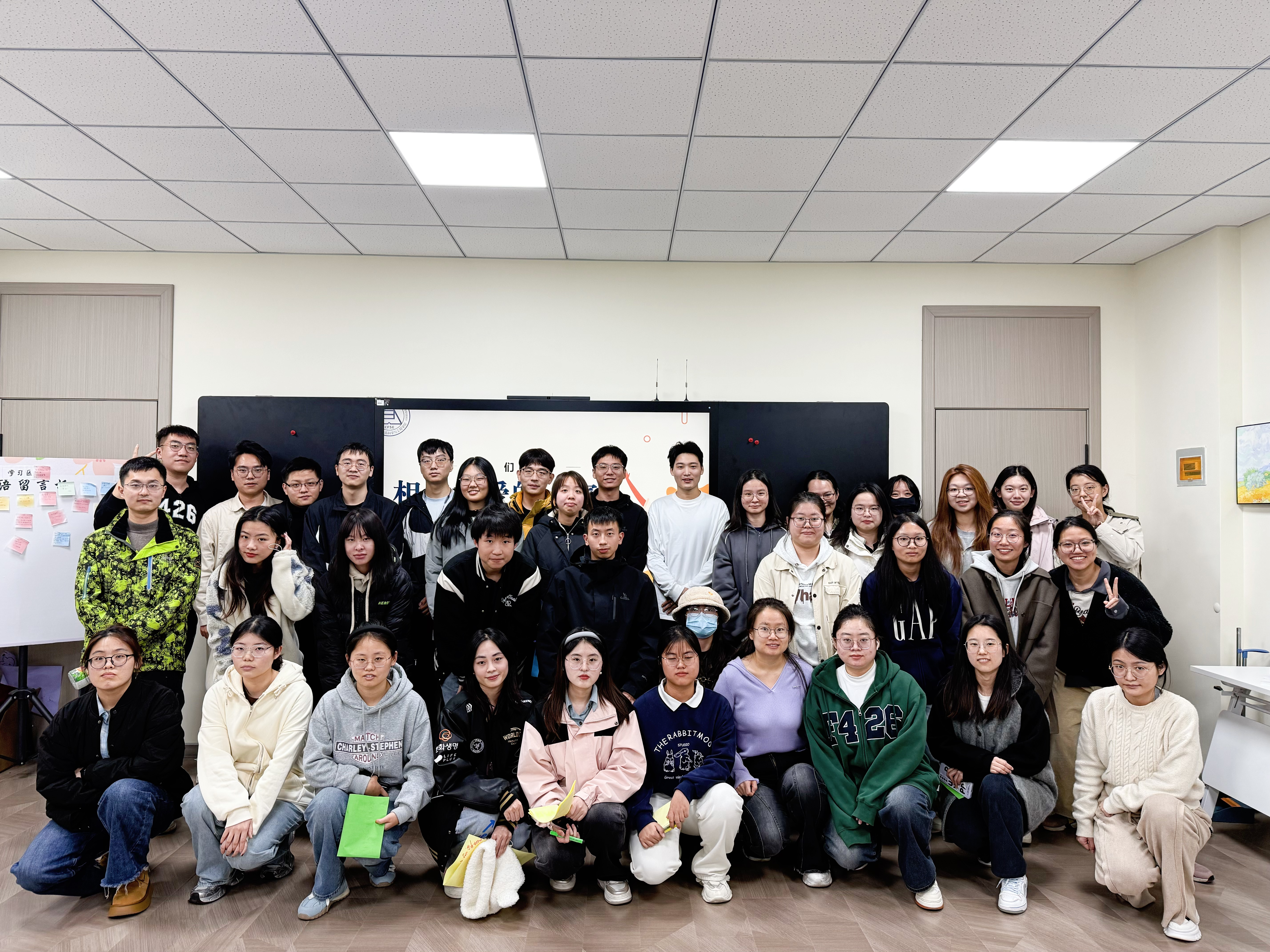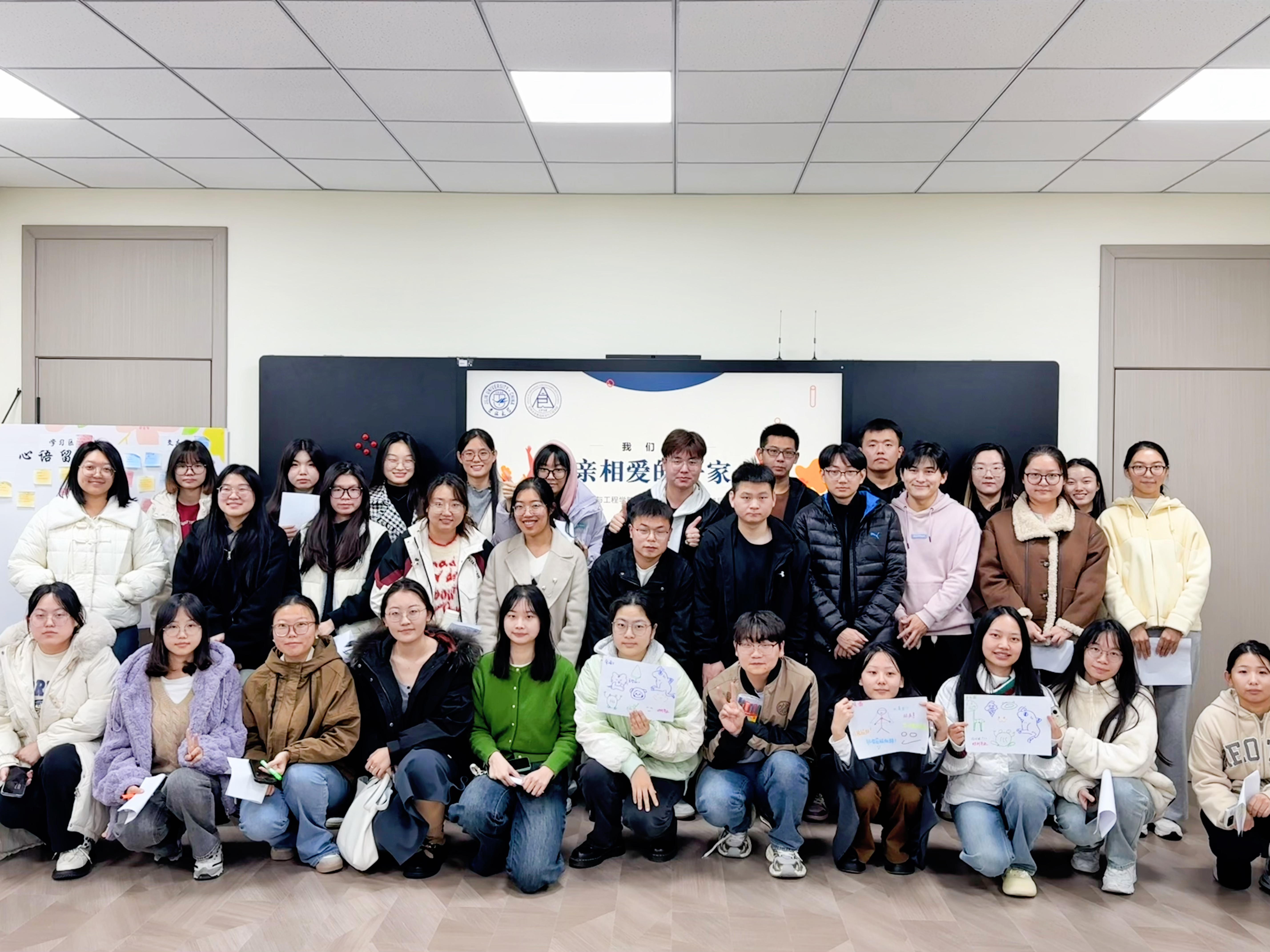 在结束阶段,每个小组合作设计了一张独一无二的“团体树”,每个人将对团队的期许和对未来的祝福融入其中,汇聚成团队的共同愿景。最后,大家齐声唱响歌曲相亲相爱的一家人,真挚的歌声在教室中回荡,同学们合影留念,为这场温馨而充实的活动画上了圆满的句号。