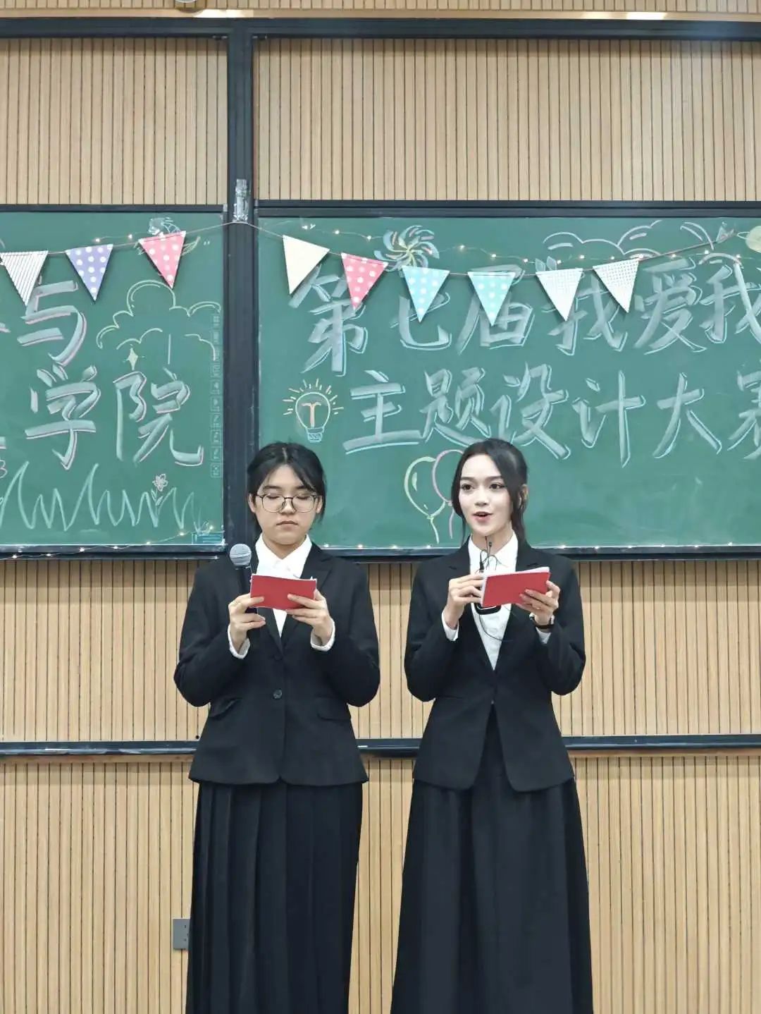 班级风采展示环节精彩纷呈!各班班长按抽签顺序依次登台,通过富有创意的班徽、别具匠