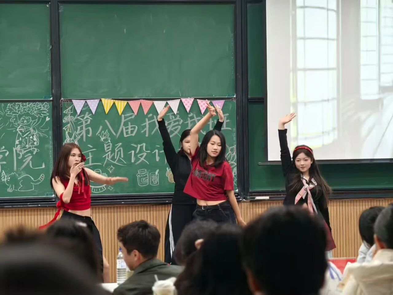 首先,是各班的班级风采展示环节,各班班长登台解说班级文化,通过各具特色的班徽、班训和富有青春活力的班歌,生动展现班级独特的精神风貌和集体魅力。随后,班级同学倾情呈现各种精彩节目,将现场氛围推向高潮。