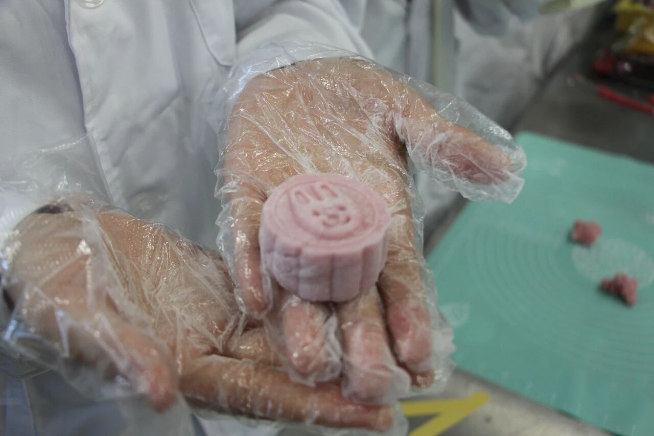 在食品学院的专业实验室中,同学们化身“月饼匠人”,从原料调配到揉面制皮,从馅料包裹到模具压花,每一个步骤都严谨又充满巧思。他们身着实验服,在专业设备与工具的辅助下,将对中秋的期盼、对家乡的眷恋都融入到一个个精致的月饼里。粉色的冰皮月饼在手中成型,花纹清晰的传统月饼摆满台面,同学们的脸上满是专注与喜悦,这不仅是一次专业实践,更是一场文化传承的生动课堂。
