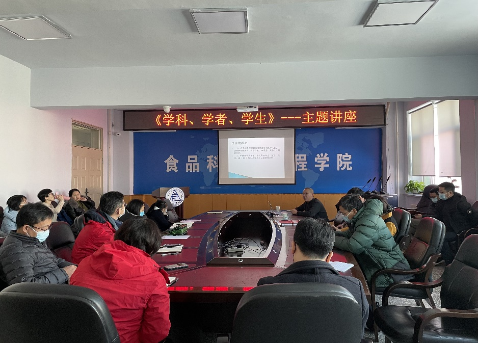 In order to strengthen discipline construction and implement the high-quality development of graduate education, November 26, 2021, 9:30 am, the College of Food Science and Engineering specially invited Professor Gao Yingjie to give a lecture on the theme of “Subject, Scholars and Students”. The meeting was held in the meeting room on the third floor of the Food Building and was presided over by the Dean Professor Zhang Tiehua. All the teachers who did not undertake the teaching task of the college participated in the meeting.