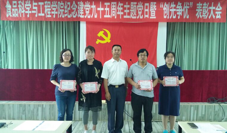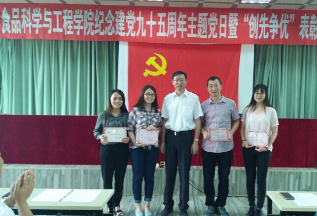 | 6月17日下午2:00,食品科学与工程学院在管理楼三楼报告厅举行庆祝建党九十五周年主题党日暨“创先争优”表彰大会。学校保密办公室副主任汪祥松、学院领导、学院全体教职工党员、学生党员参加了此次会议。会议由学院党委副书记梅士伟主持。 首先,在鲜红的党旗下,全体新老党员在领誓人金鑫同志的带领下庄严宣誓,表达了对党的忠诚,对党的坚定信念和为党的事业奋斗终身的决心。 随后,学院副院长李勇军宣读了《关于表彰先进党支部、优秀党务工作者和优秀共产党员的表彰通令》,大会对获奖的先进单位和个人进行了表彰。 随后,学院党委书记高福和发表讲话,他首先对这一年来广大党员同志面对学科专业调整为新学院的建设与发展做出的努力与奉献给予了高度肯定,并指出一个刚组建的学院,就像一个新组建的家庭一样,需要观念达成、思想共识、情感交融和理解宽容,更需要各种教育资源的有序整合、科学利用和有效挖掘。为此高福和书记对全体党员提出了几点希望,一是共同建设好一个美好家园,即学院;二是发挥好党员的桥梁纽带作用和模范带头作用。三是弘扬事业为上精神、只争朝夕精神和乐于奉献精神;四是要不断强化党员意识、大局意识、责任意识和有为意识。 最后,学院组织与会人员开展了健身徒步走活动。