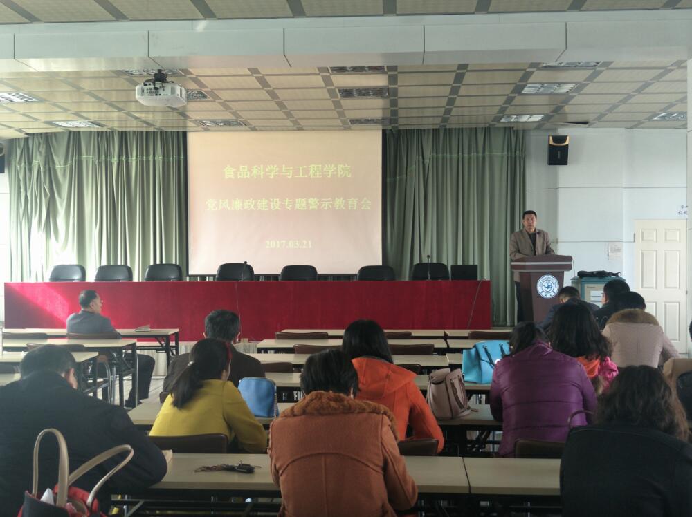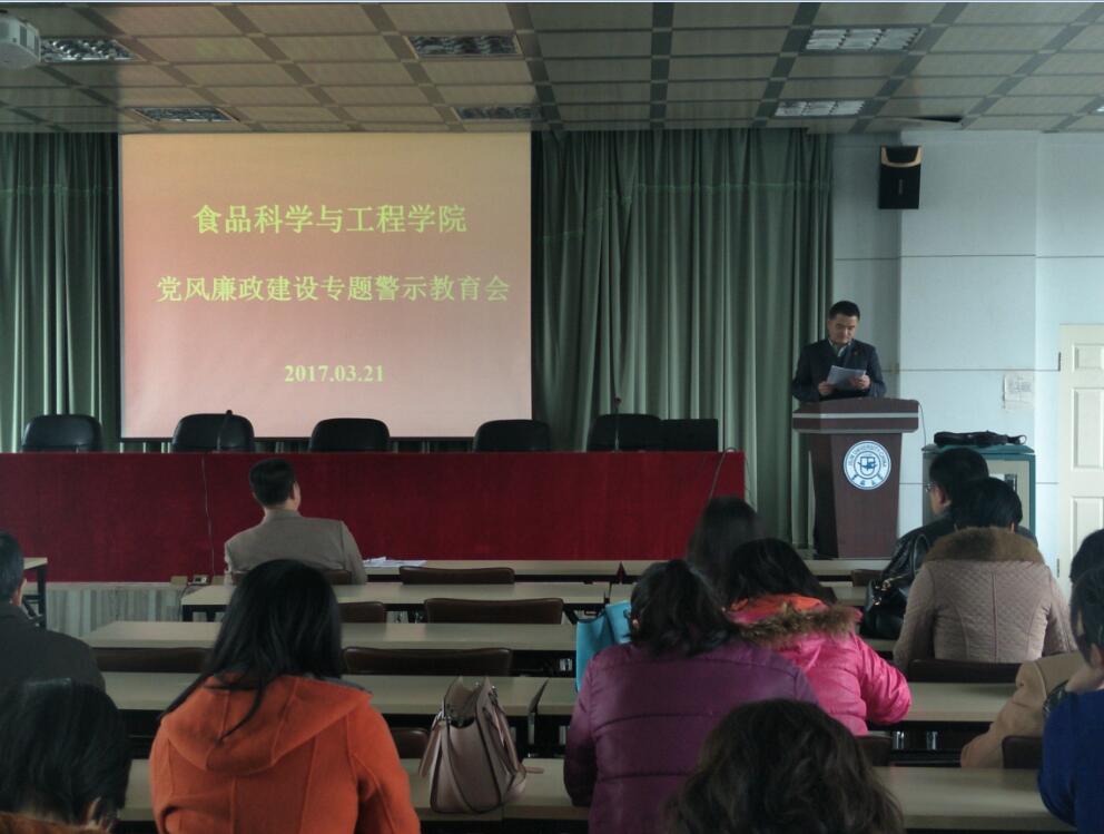 | 为贯彻落实学校党委有关要求,进一步加强学院党风廉政建设,持续推进全面从严治党,营造风清气正的学院政治生态,3月21日下午,食品科学与工程学院在管理楼三楼报告厅召开了党风廉政建设专题警示教育会。学院全体教职员工参加了会议。会议由党委书记高福和同志主持。 会上,学院党委副书记兼纪委书记梅士伟同志传达了《吉林大学2016年信访反映和纪律审查处理情况通报》,并介绍了当前党风廉政建设和反腐败工作的总体形势。他强调,全体党员必须保持反腐倡廉、正风肃纪的定力,以正修身,铲除病灶,让新风正气成为自觉、成为习惯,积聚起营造学院风清正气的强大合力。 学院党委书记高福和同志传达了学校党委书记杨振斌同志在吉林大学党风廉政建设专题警示教育会议上做的《即知即改、立行立改,确保全面从严治党要求在我校落地生根》的重要讲话精神。高书记强调,要充分认识开展党风廉政教育的重大意义,用“身边人”“人边事”时刻警示自己,牢记法纪意识,做遵章守纪的好干部、好党员、好教工。要求学院全体教职工牢固树立“四个意识”,尤其是政治意识和看齐意识,进一步严明政治纪律,加强廉洁自律,扬正气、树新风,以永远在路上的恒心和韧劲推动全面从严治党的层层深入,形成党风更好、作风更正、政风更清的学院政治生态,推进学院各项事业健康、有序、稳步发展。