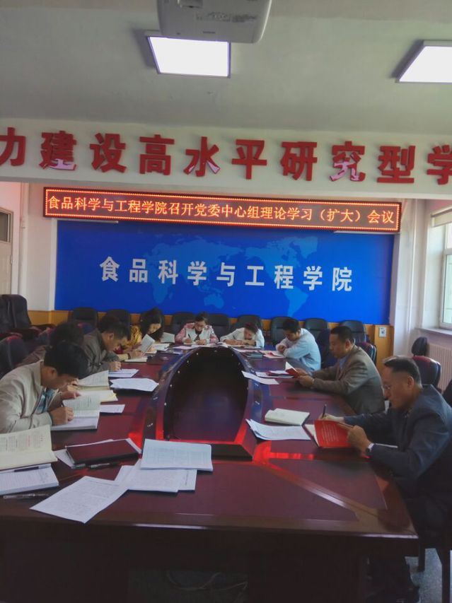 2017年5月8日上午,食品科学与工程学院党委召开党委理论中心组学习(扩大)会议,集中学习《关于新形势下党内政治生活的若干准则》和《吉林大学运用监督执纪“四种形态”的实施办法》(试行)。学院党委委员、纪委委员、各党支部书记参加了会议,会议由学院党委书记高福和同志主持。