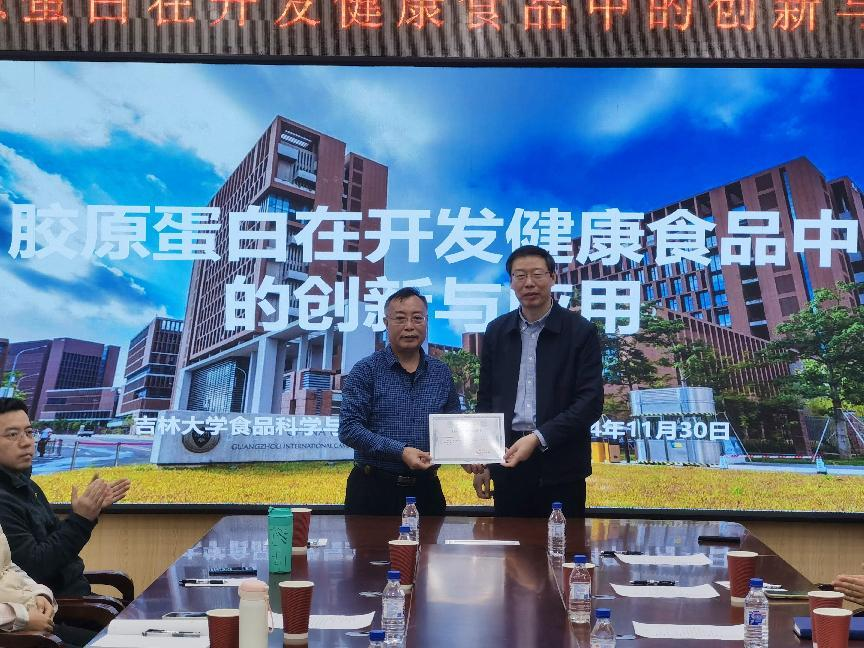 11月30日,吉林大学食品科学与工程学院特邀华南理工大学食品科学与工程学院赵谋明教授,围绕“胶原蛋白在开发健康食品中的创新与应用”主题,为学院师生带来了一场精彩的学术报告。华南理工大学食品营养与健康研究所研究员万芝力随行参加了本次活动,院长张铁华主持了报告会。