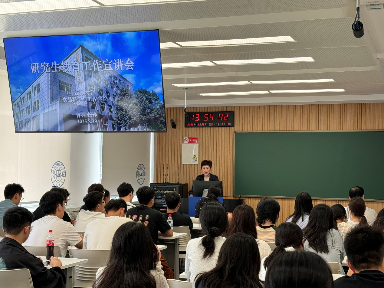 8月29日下午,食品科学与工程学院院长张铁华、副院长张婷、研究生办公室主任王军、研究生辅导员王丹、研究生秘书张曦美及2025级全体研究生参加了迎新宣讲活动。会议由副院长张婷主持。